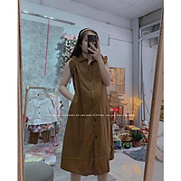 Váy bầu thời trang thiết kế sơ mi chất lụa hàn châu freesize từ 45 đến 70kg-đầm bầu mùa hè