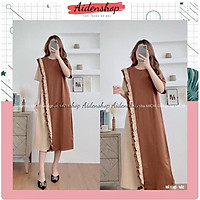 Đầm bầu nữ dáng dài, Váy bầu sát nách chất thun xếp ly B16
