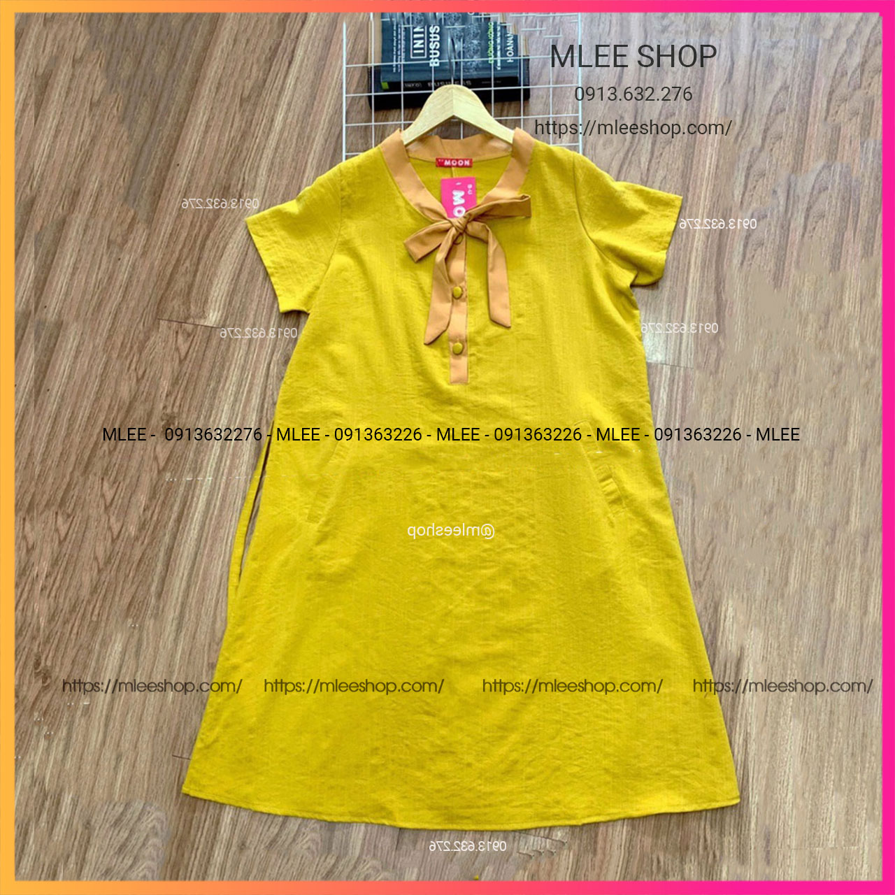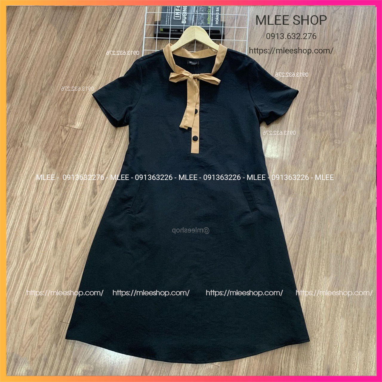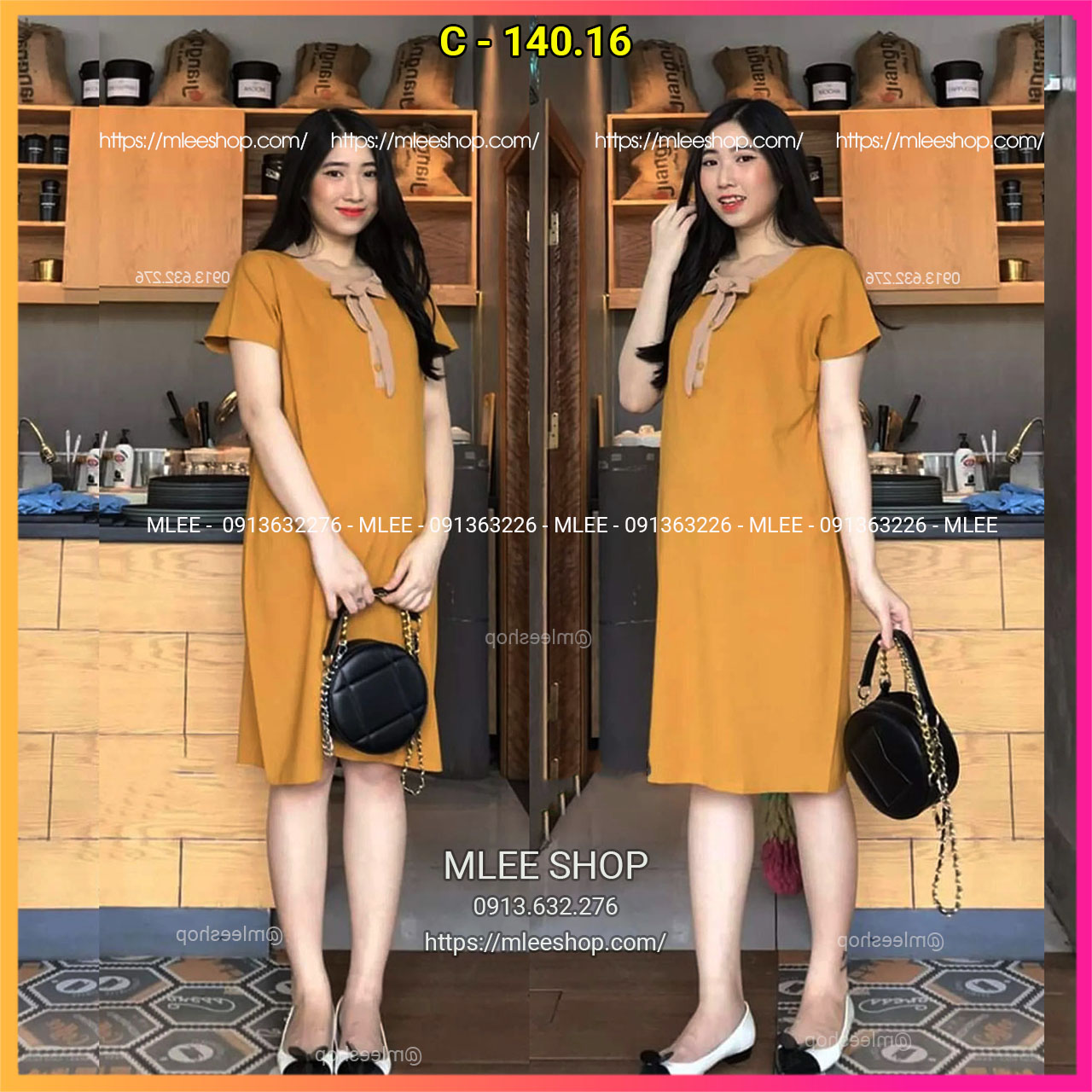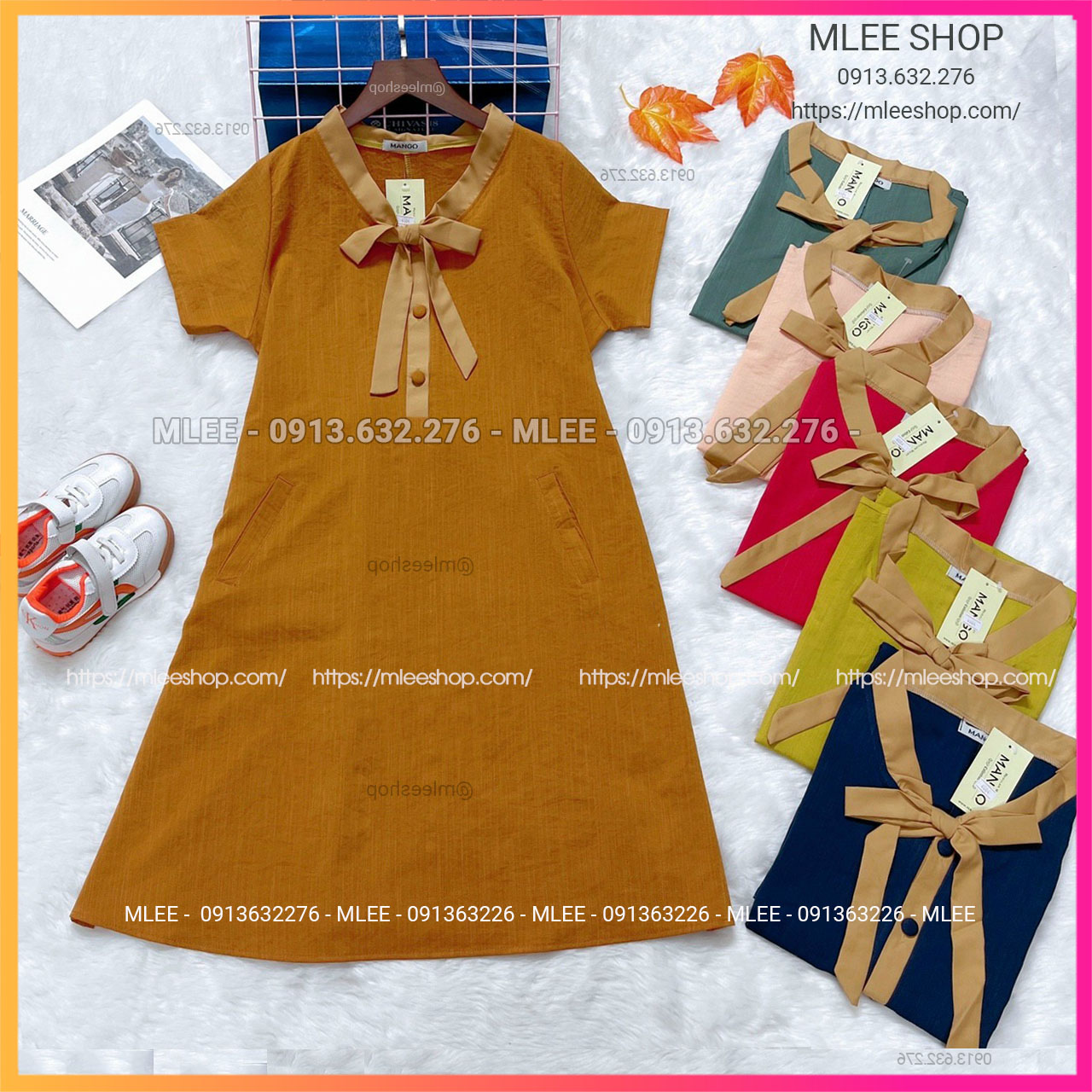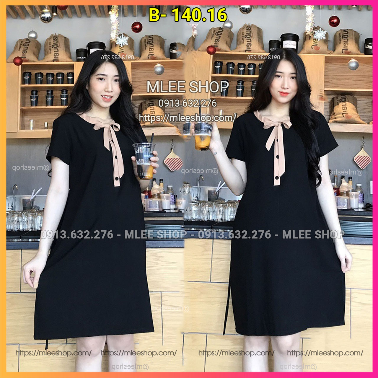 Đầm bầu công sở đẹp, đầm suông bầu phối nơ cổ thời trang, MLEESHOP