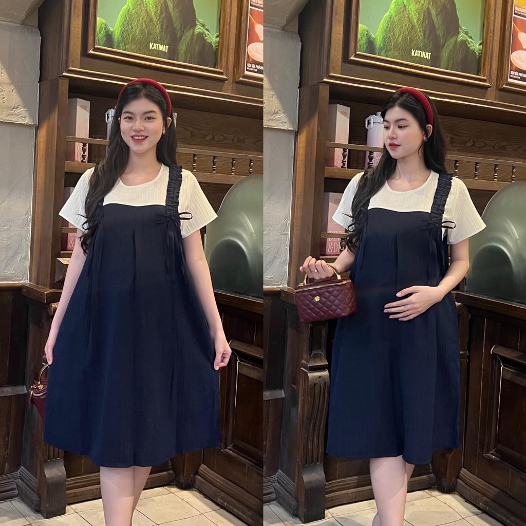 Giới thiệu Đầm Bầu Form Dáng Sơ Mi Sọc Xinh Chất Cotton Lụa Mềm Mát, Váy Bầu Cá Tính Size M L - Xanh