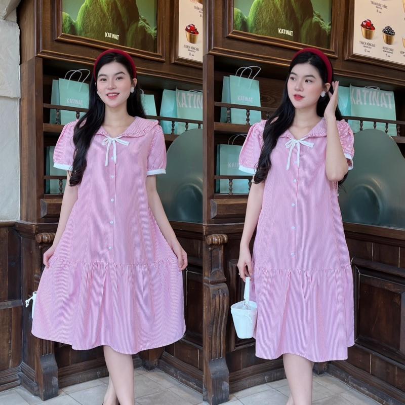 Đầm bầu sọc dáng đuôi cá cổ bèo thắt nơ xinh sang nhẹ nhàng Mom diện thoải mái nơi công sở và dạo phố đều xinh..
