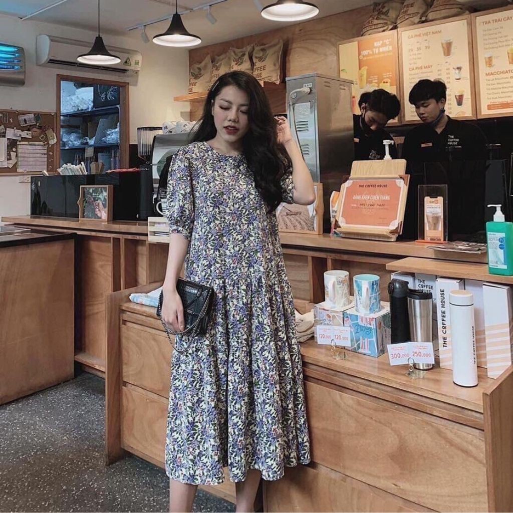 Giới thiệu Đầm bầu thời trang thiết kế hoa nhí MB92 chất Lụa Hoa freesize từ 45 đến 70kg