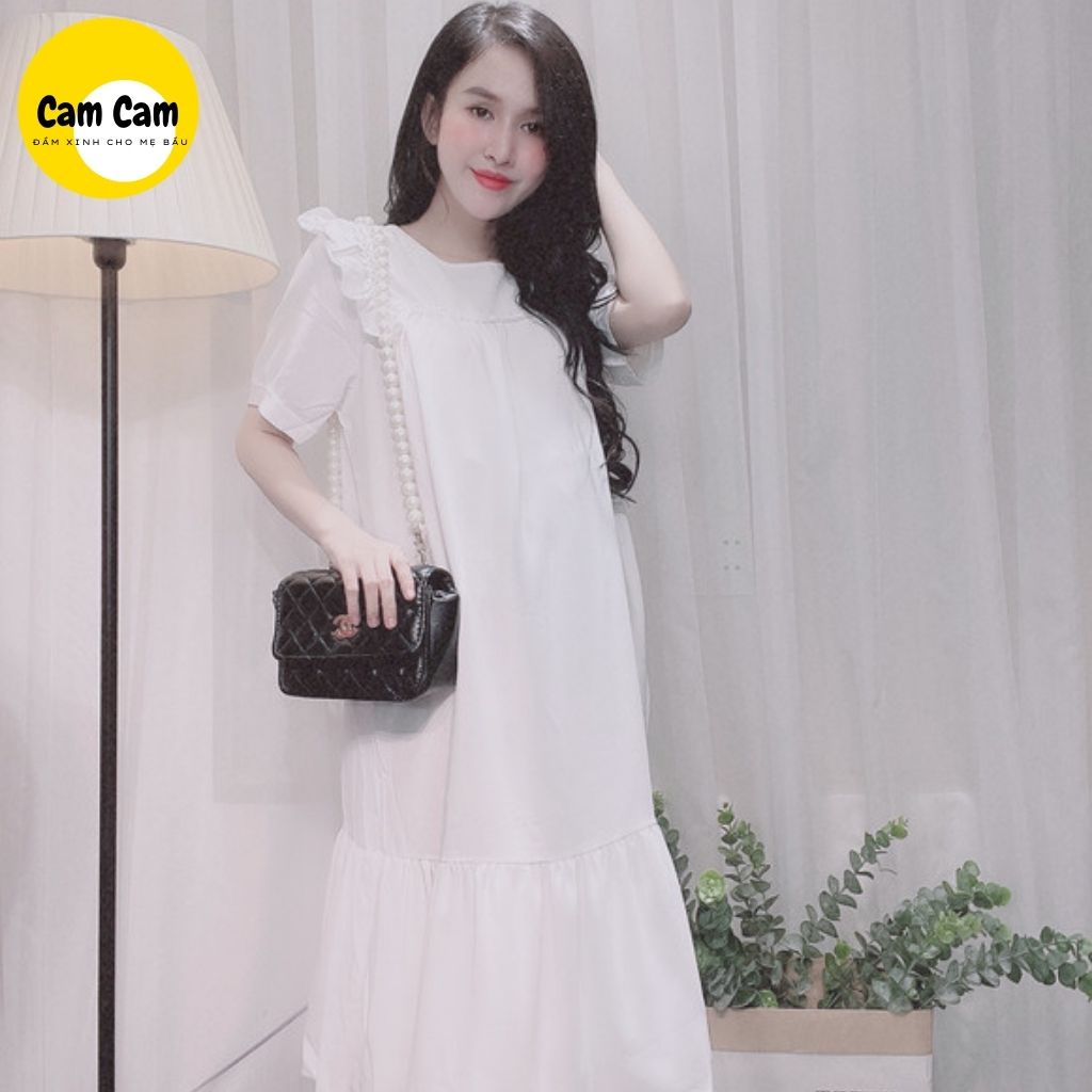 Giới thiệu Đầm bầu xinh SALE SOCKĐầm bầu dự tiệc, cách tầng trắng xinh, vai bèo, tay phồng, mã ĐB1008