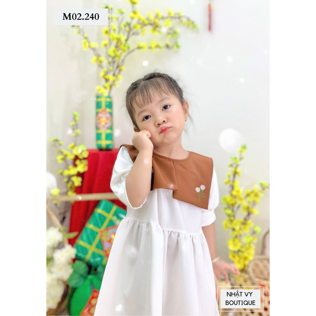 Giới thiệu Đầm Bé NHẬT VY Cổ Vuông Thêu Hoa Chiết Eo Chất Cotton Dáng Babydoll Màu Vàng, Trắng - M02