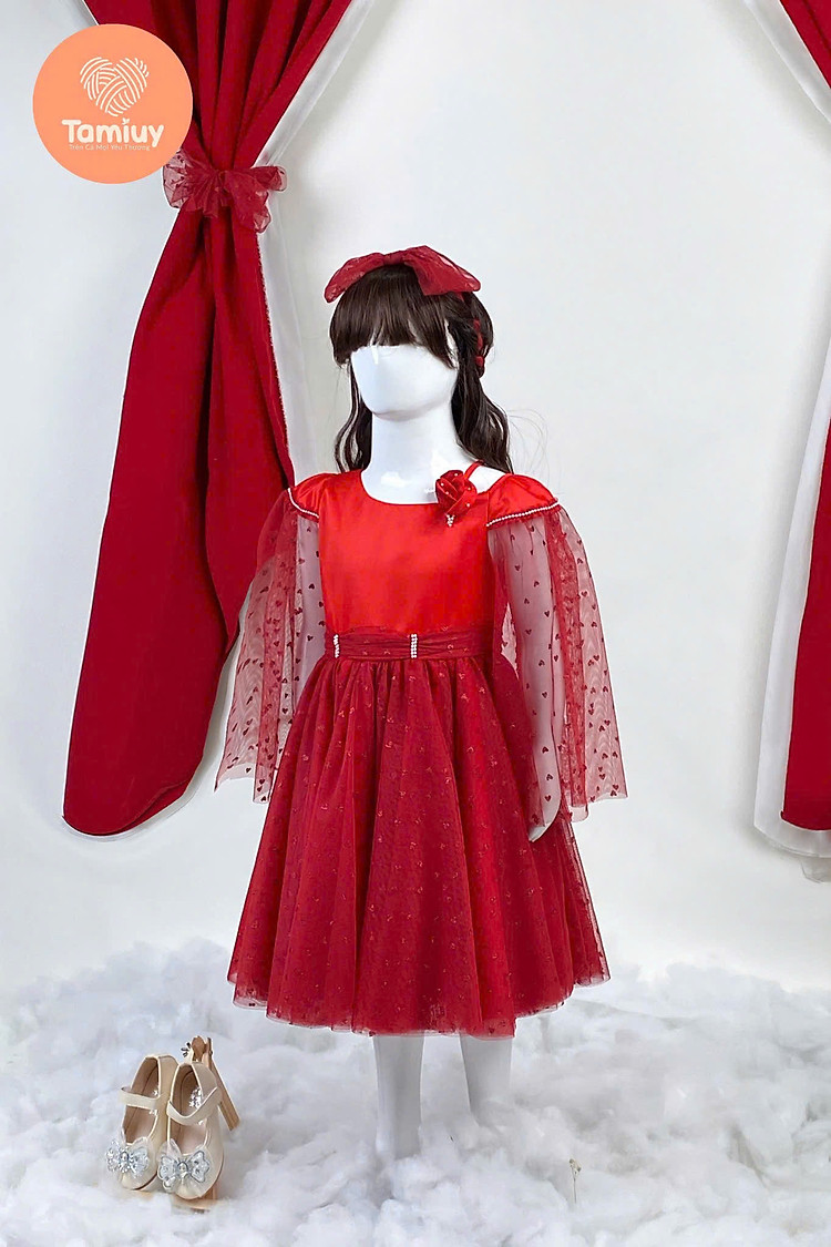 Đầm dạ hội đỏ TAMIUY mang vẻ đẹp kiêu sa, ngọt ngào nhưng vẫn giữ trọn nét hồn nhiên của bé gái. Thiết kế nổi bật với phom dáng công chúa xoè nhẹ, phù hợp cho các dịp dự tiệc, Noel, Tết, sinh nhật, biểu diễn hoặc chụp ảnh kỷ niệm.