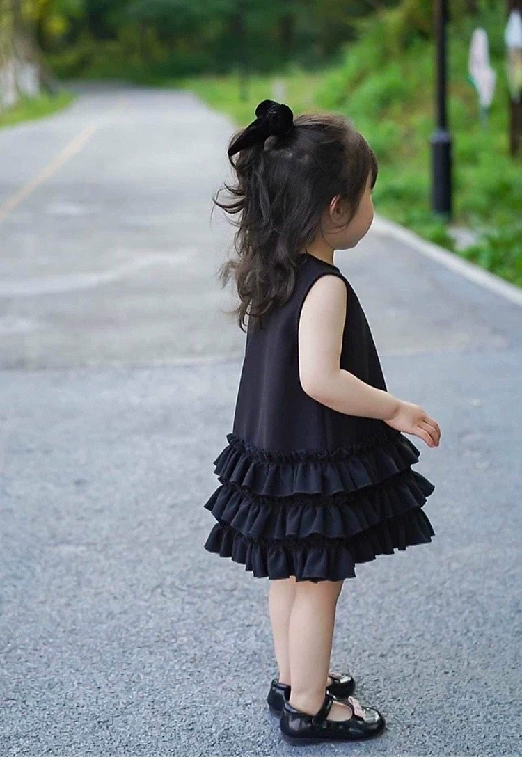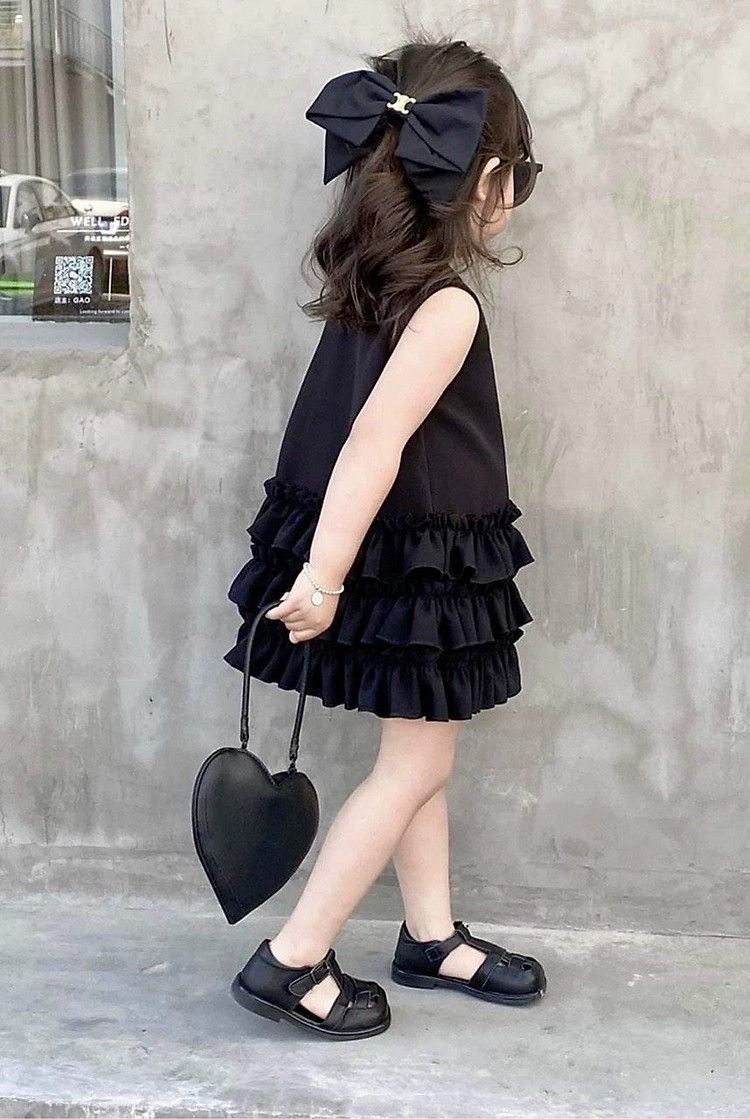 VÁY BÉ GÁI ĐEN PHỐI CHÂN BÈO Siêu xinh