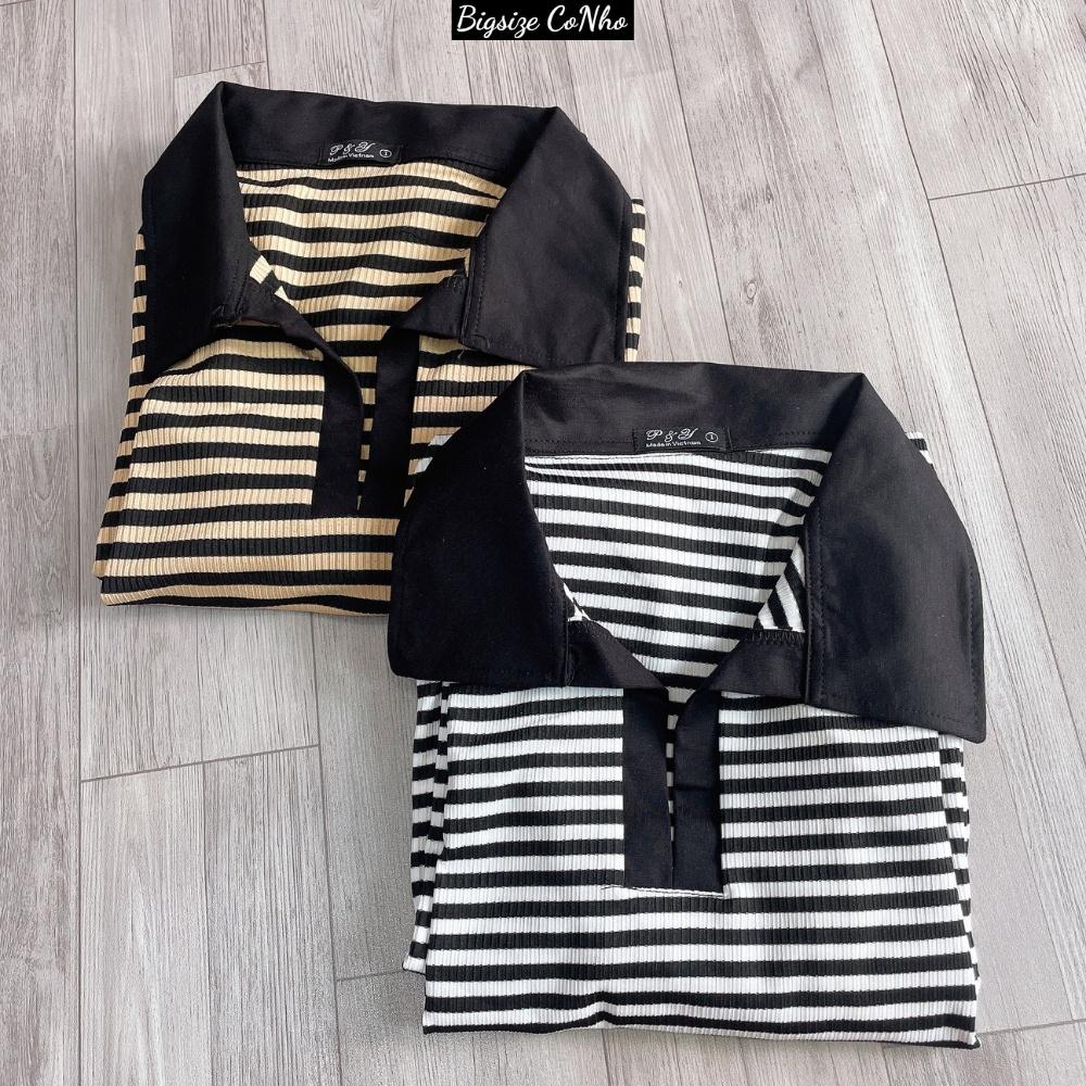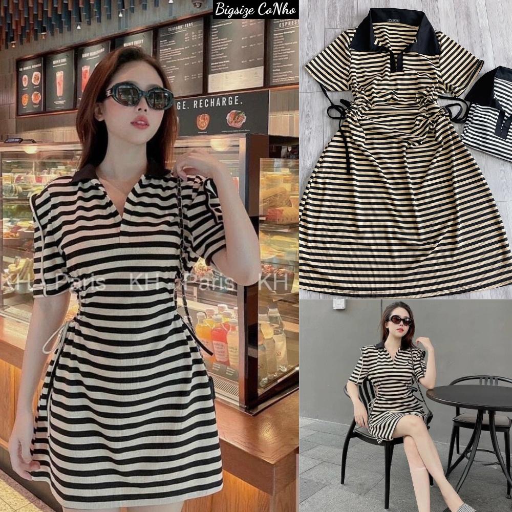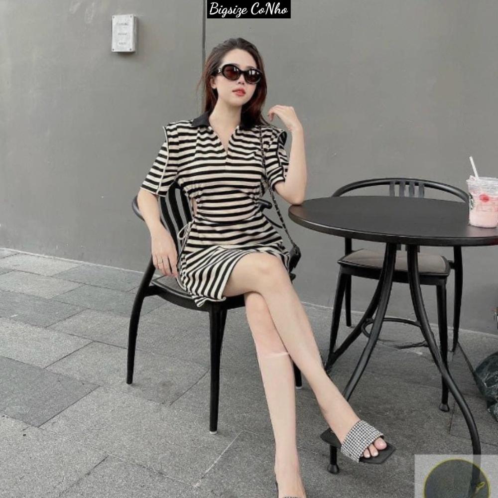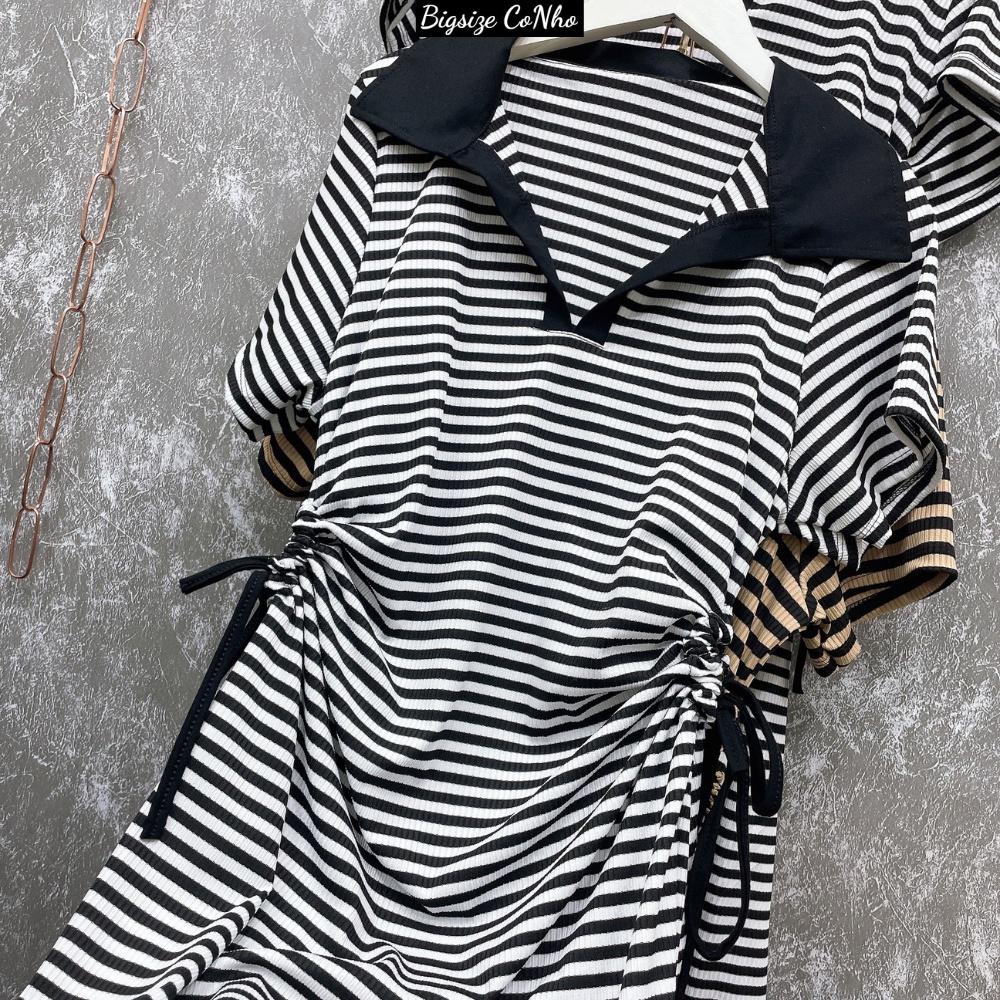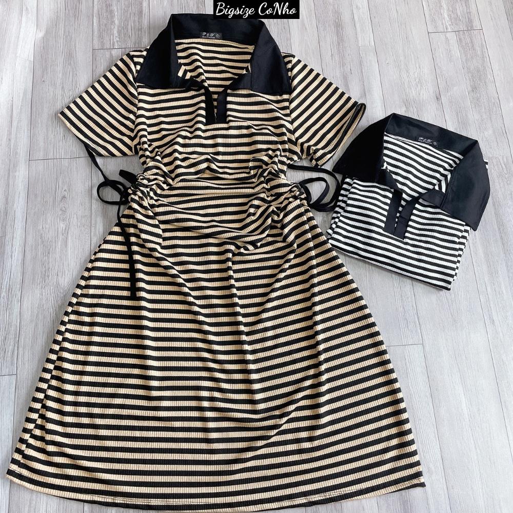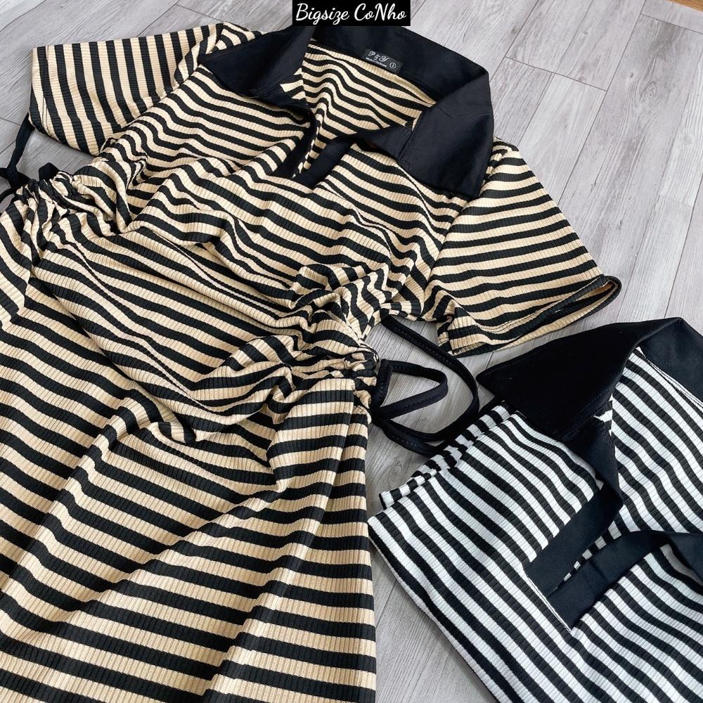 Đầm bigsize nữ xẻ sọc đũa thun gân tăm cổ bẻ tay ngắn ôm body rút dây hai bên eo từ 60-95kg G75