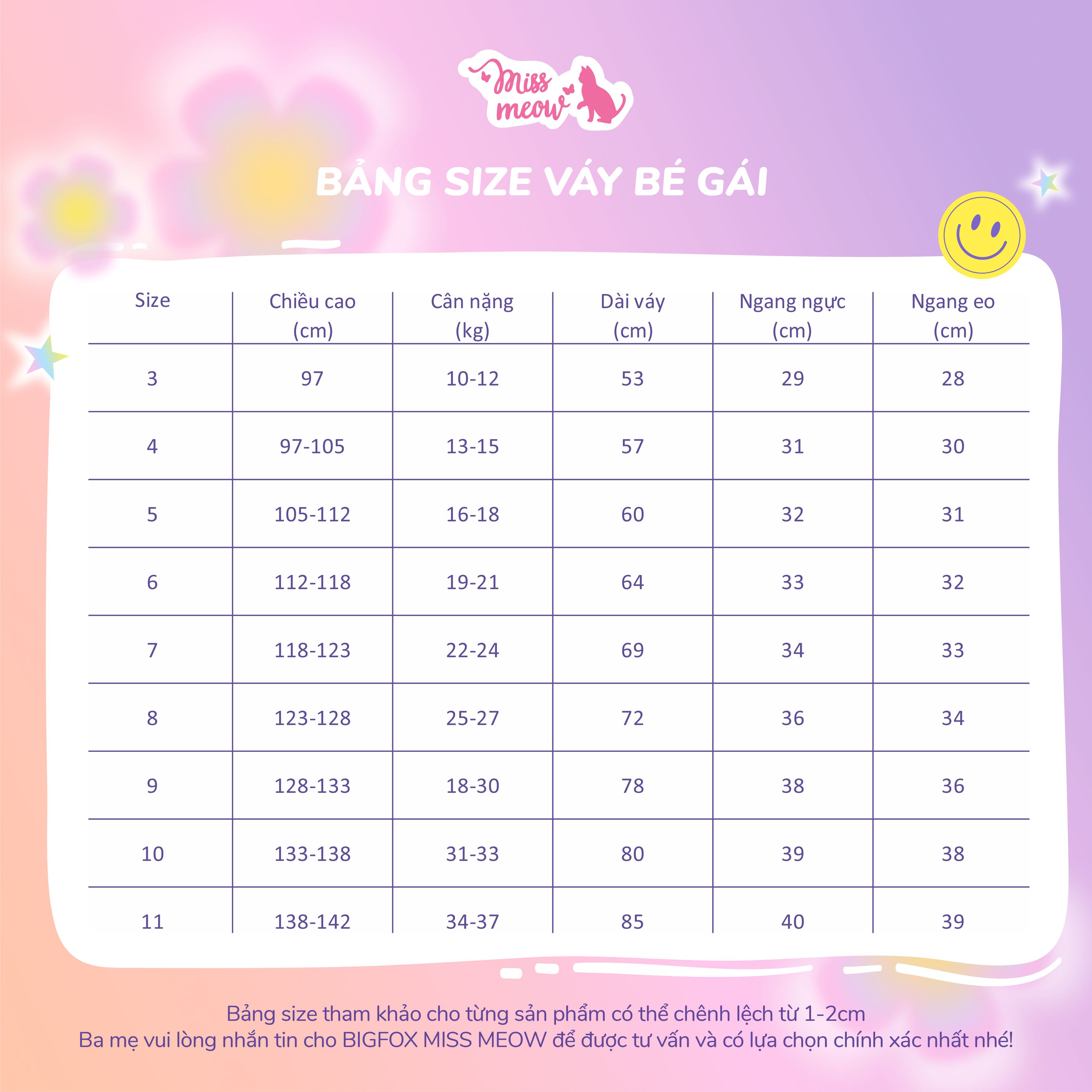 Đầm cho bé gái size đại Bigfox Miss Meow mùa hè cổ vuông tay phồng dáng babydoll công chúa cỡ trẻ em 3-11 tuổi 30kg 35kg - Miranda Dress