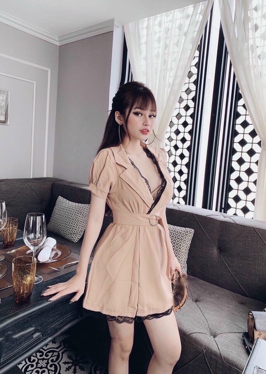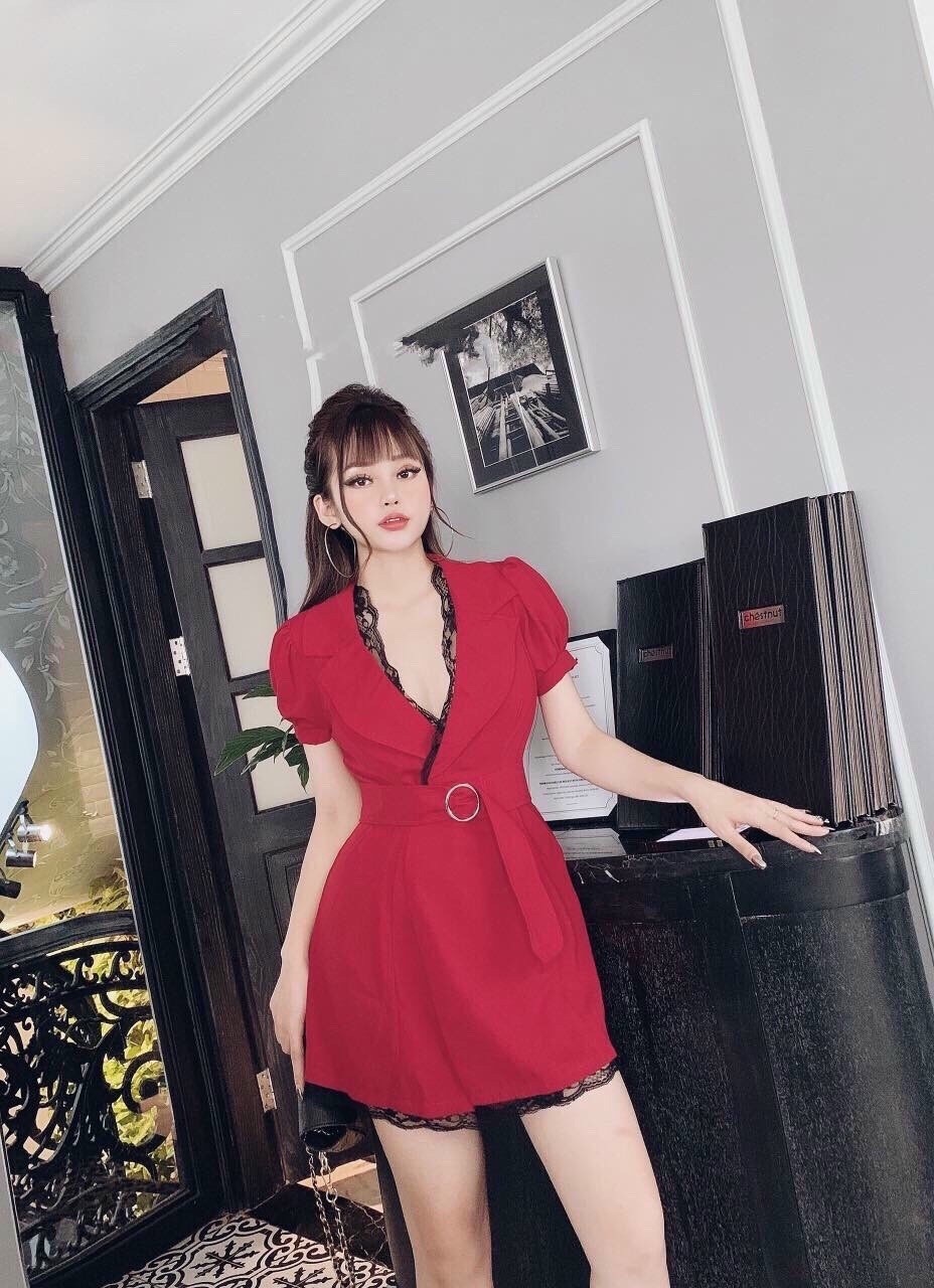 From: vừa vặn ôm dáng chuẩn cùng với phối ren và cổ vest tạo điểm nhấn