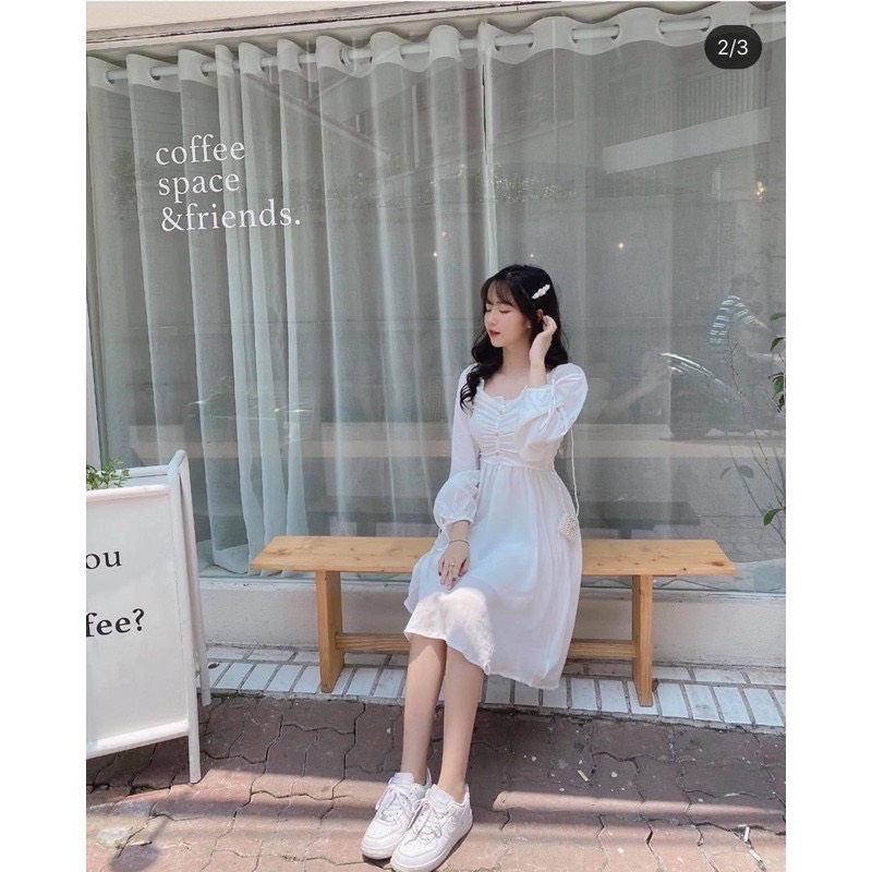 Đầm có bo dây thun phía sau lưng nên eo nhỏ hay eo to đều ôm eo hết chị nhé