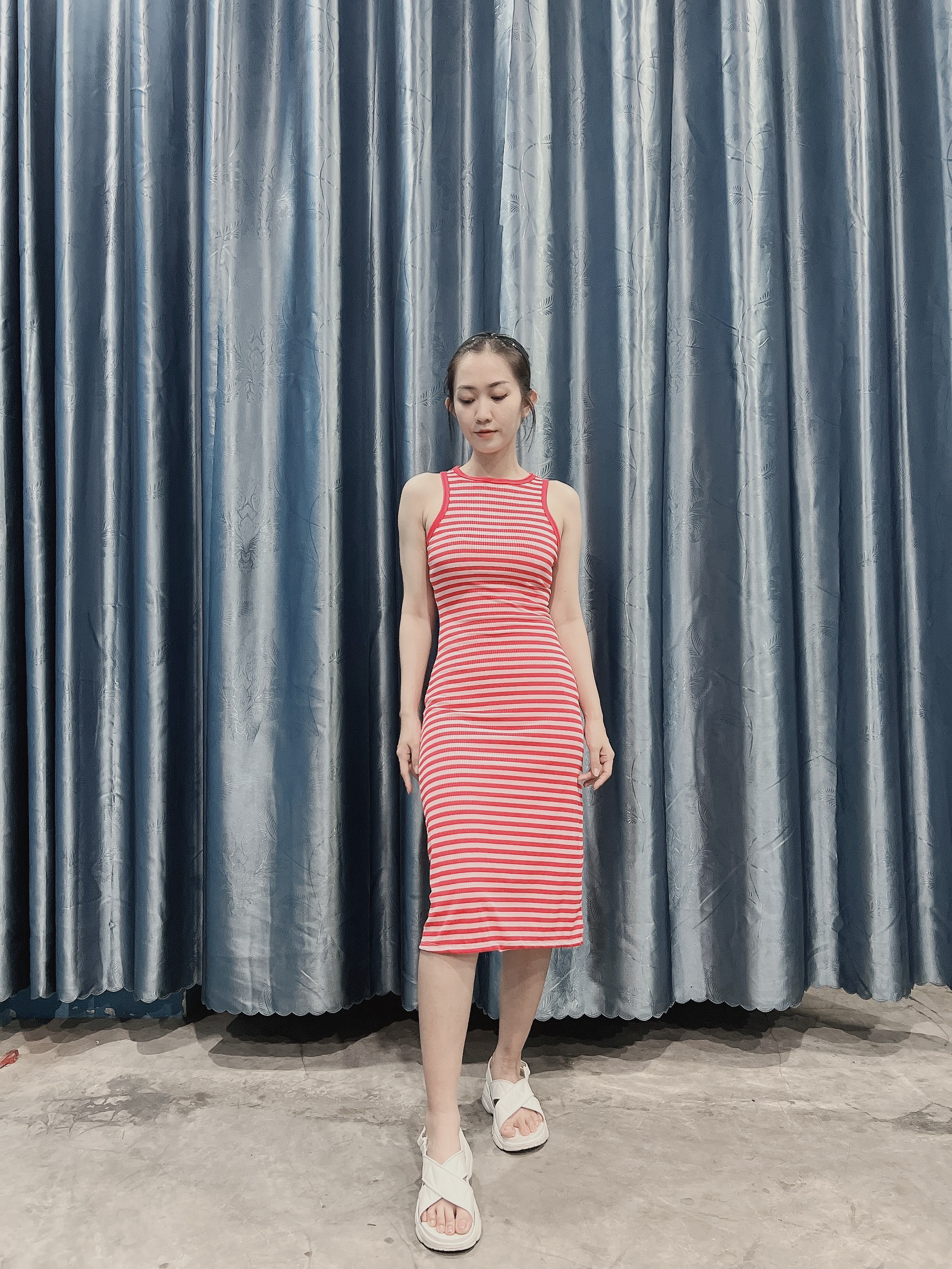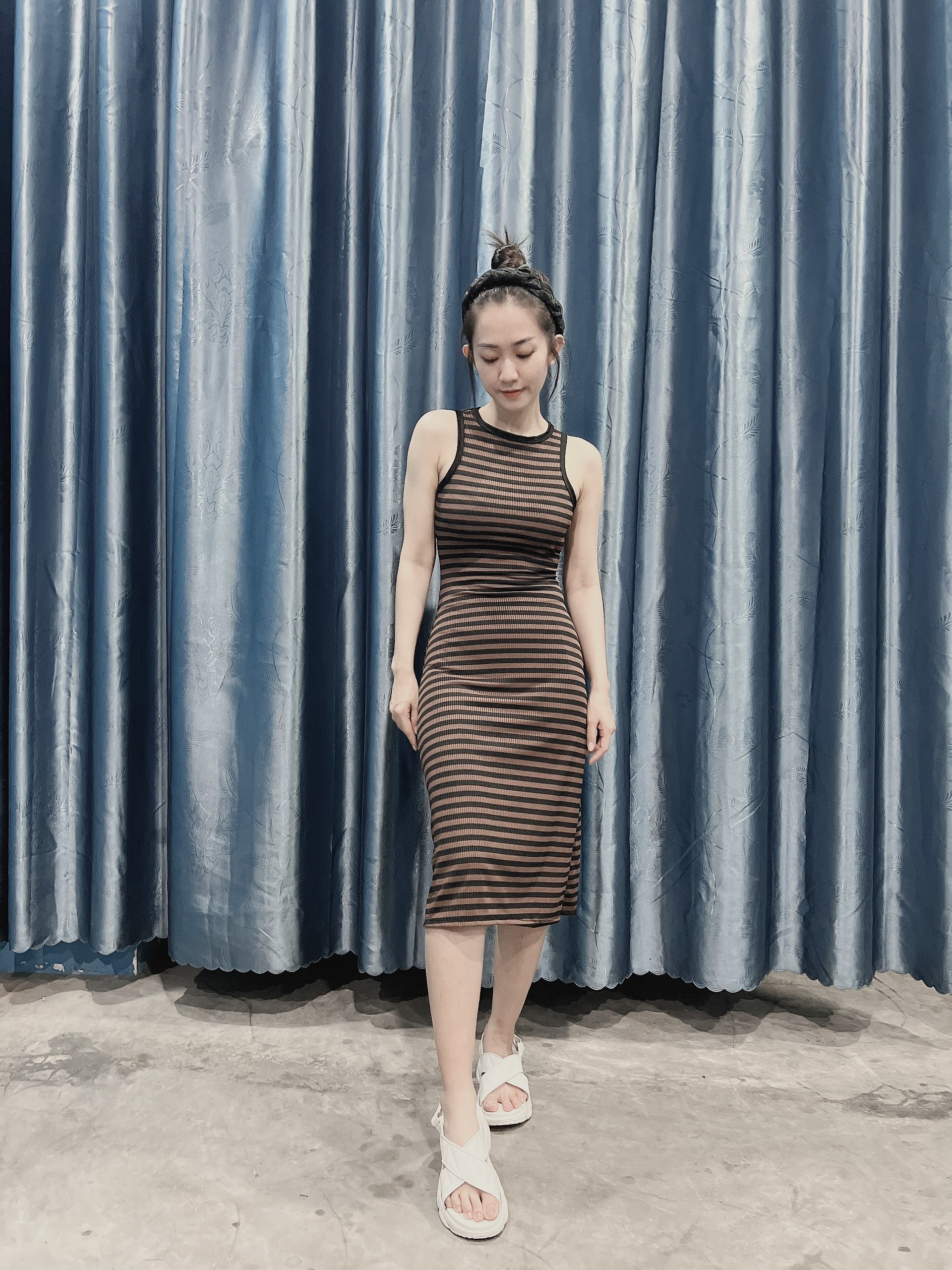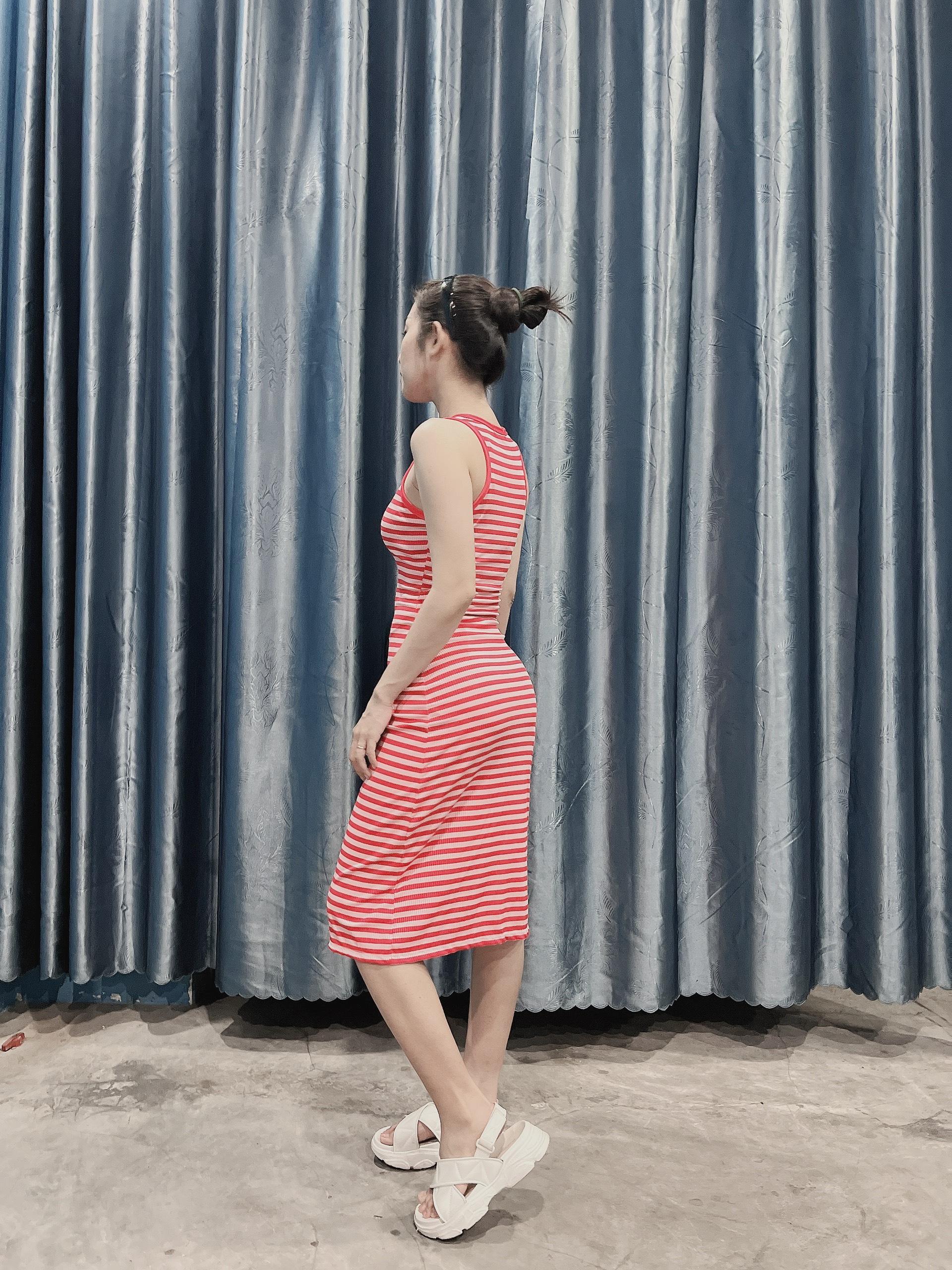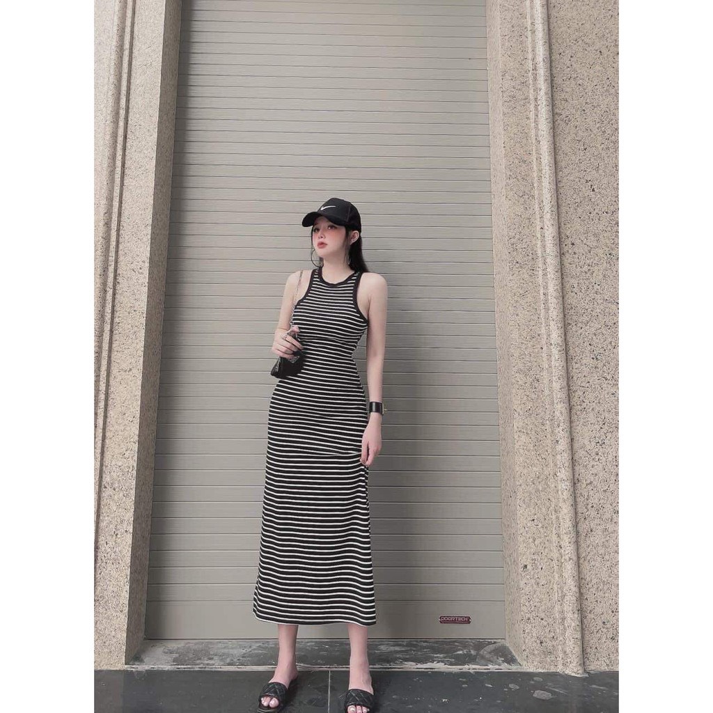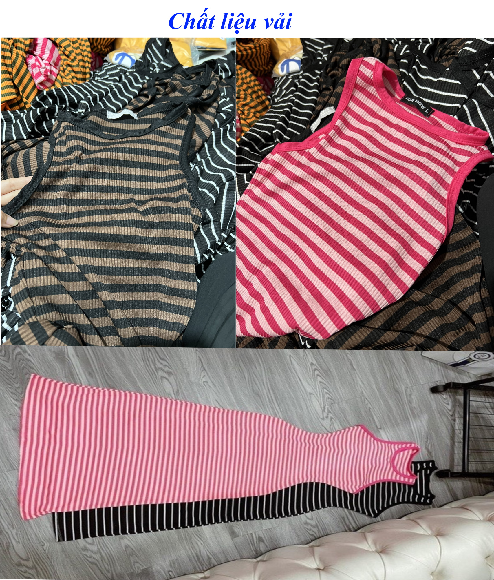 Đầm dài nữ body 3 lỗ sát nách, dễ thương Size từ 40kg đến 53kg, Chất liệu thun gân, co giãn, mềm mại, in sọc ngang