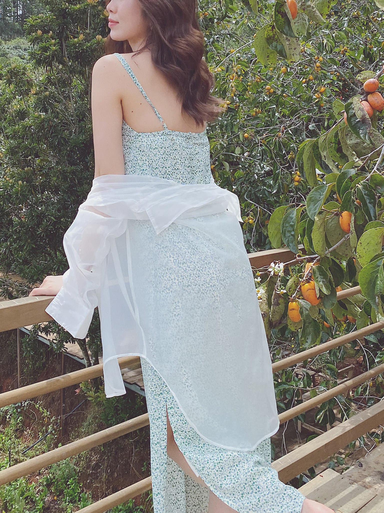 Kết hợp với áo khoác mỏng mang lại dáng vẻ dịu dàng, nhã nhặn.