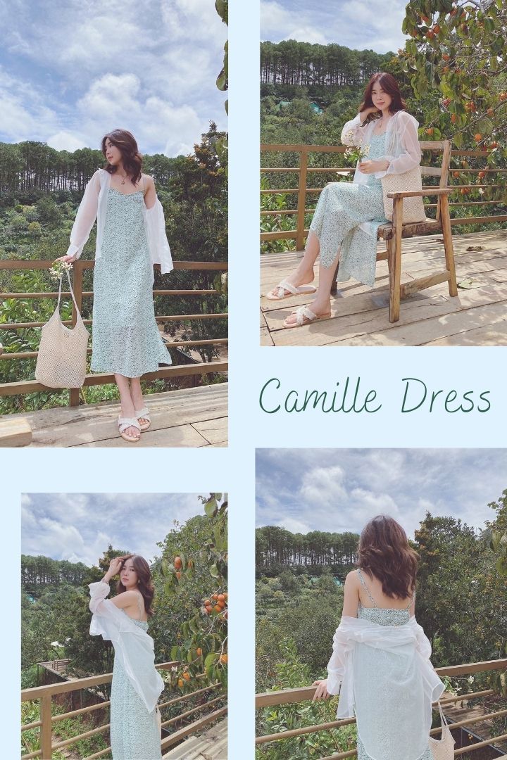 THÔNG SỐ SẢN PHẨM Camille Dress - Đầm hai dây hoa nhí dáng xuông