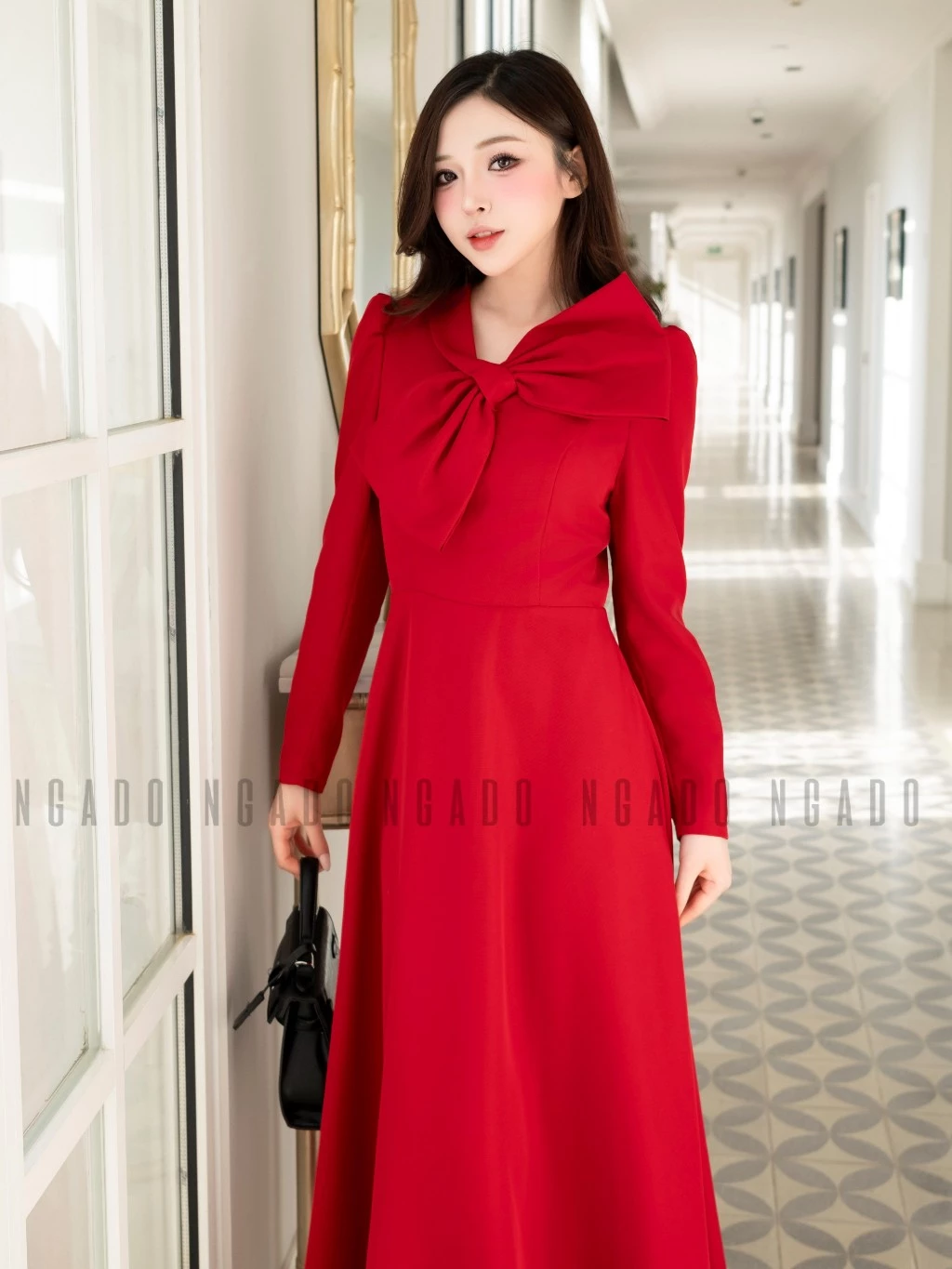 Tên sản phẩm: Đầm đỏ cổ phối nơ
