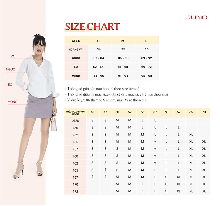* Bảng size trên mang tính chất tham khảo, tùy thuộc vào số đo cơ thể mỗi người và chất liệu vải khác nhau sẽ có sự chênh lệch nhất định từ 1 - 2cm.