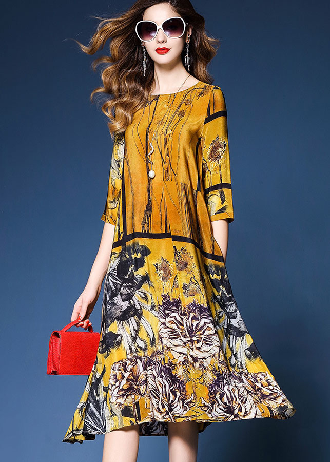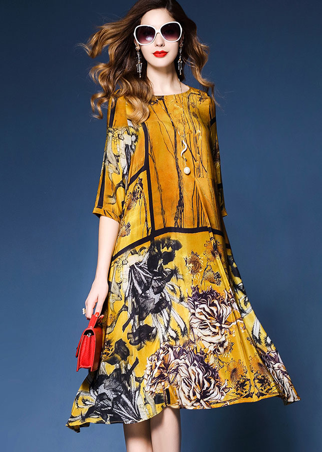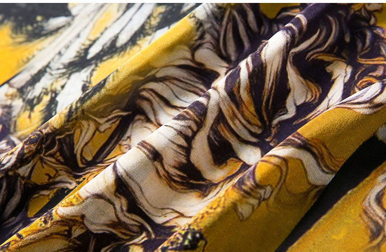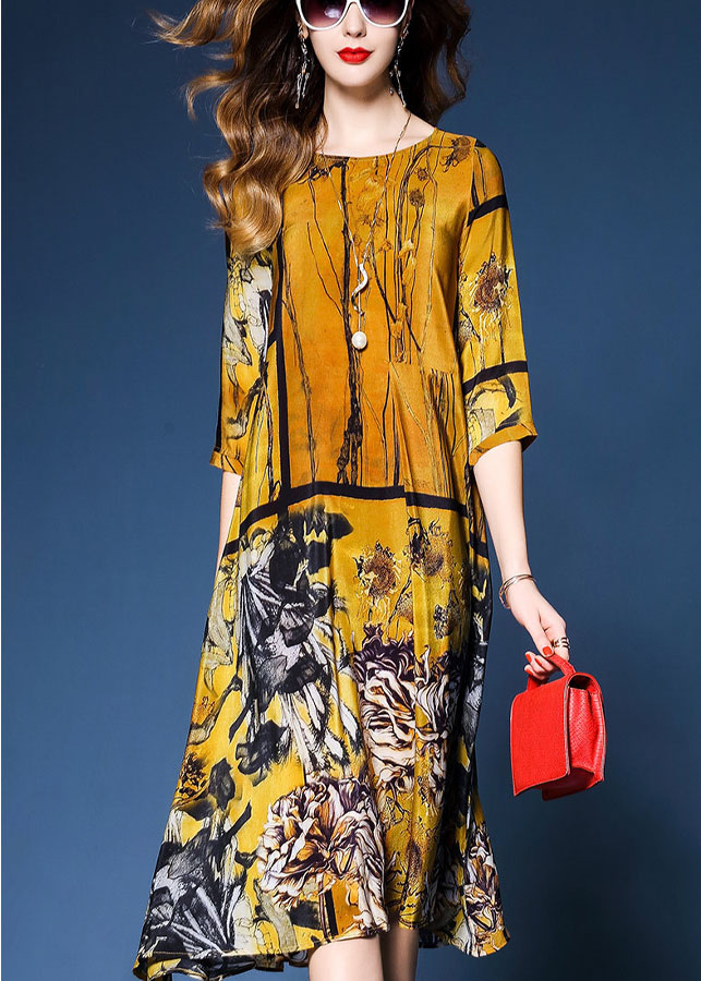 Đầm nổi bật với thiết kế phỏng theo hoa văn lụa tơ tầm các hãng nổi tiếng nhưng giá cạnh tranh