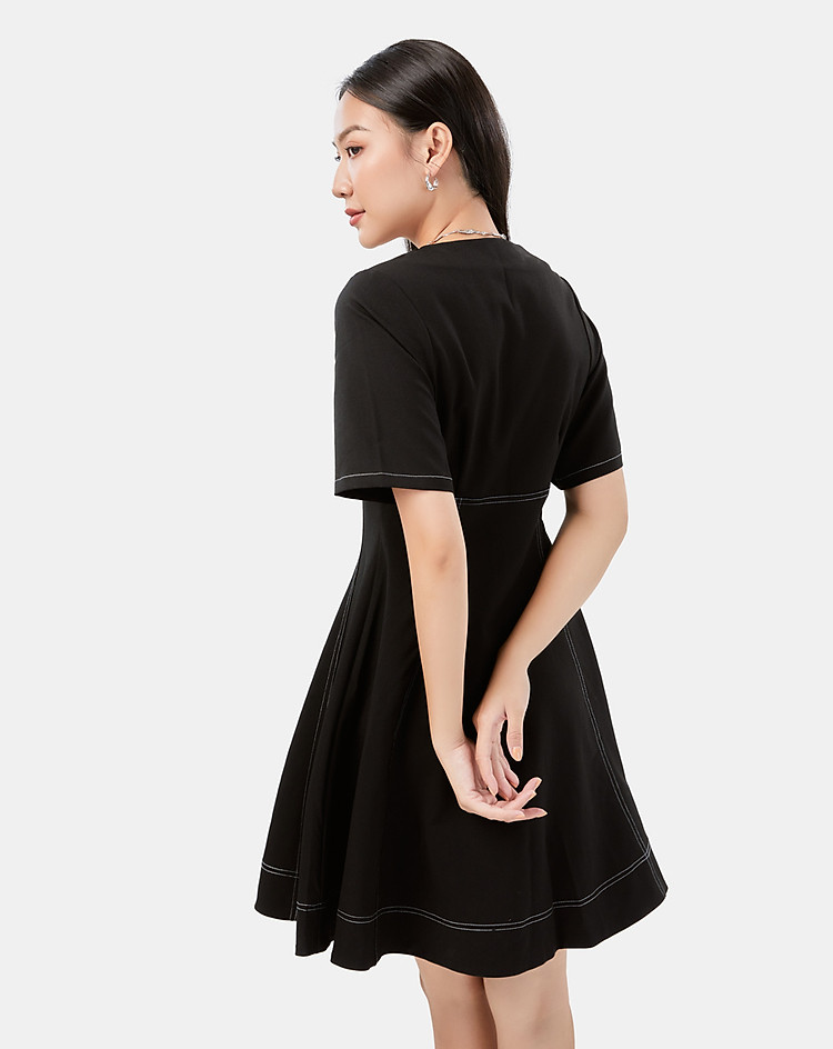 Đầm Mini Nữ Thời Trang Nữ JUNO Cổ V Dáng A Chạy Chỉ Viền JNDLU016