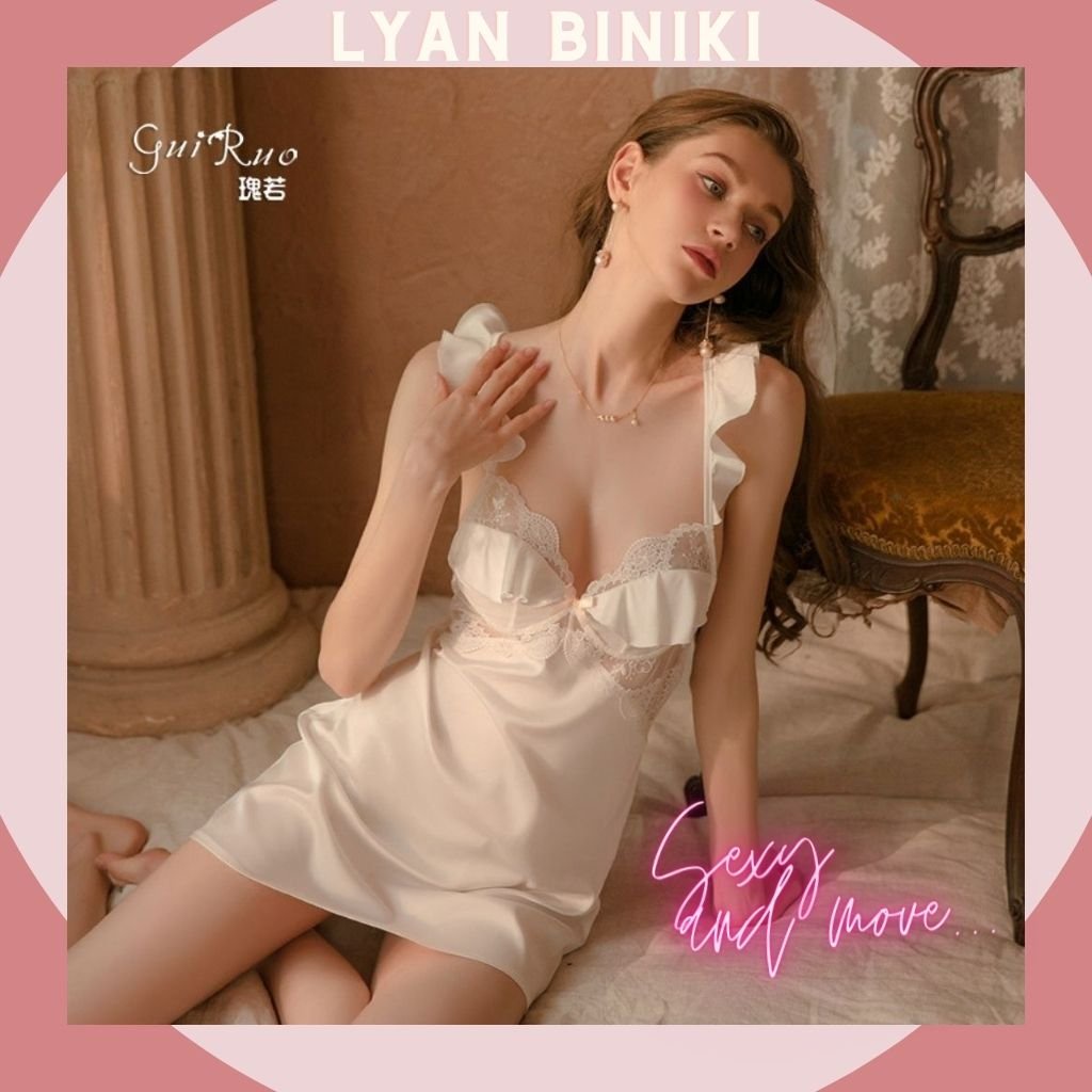Giới thiệu Đầm ngủ váy ngủ 2 dây phối ren cánh tiên sexy gợi cảm LYAN BIKINI L004