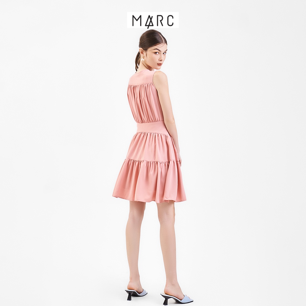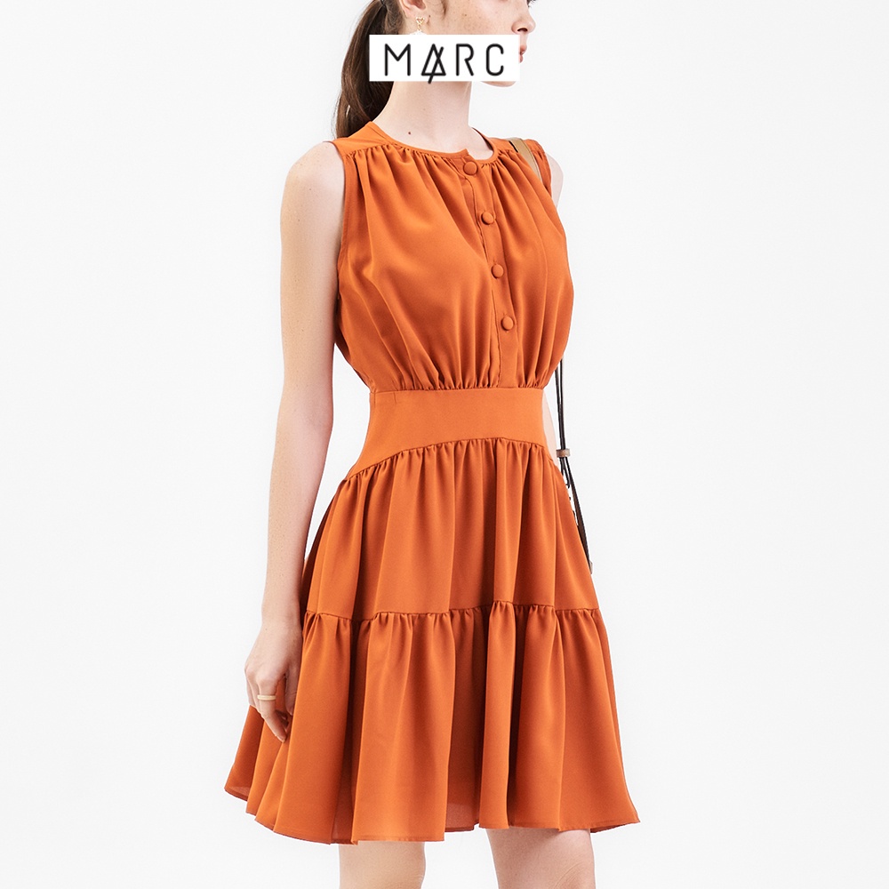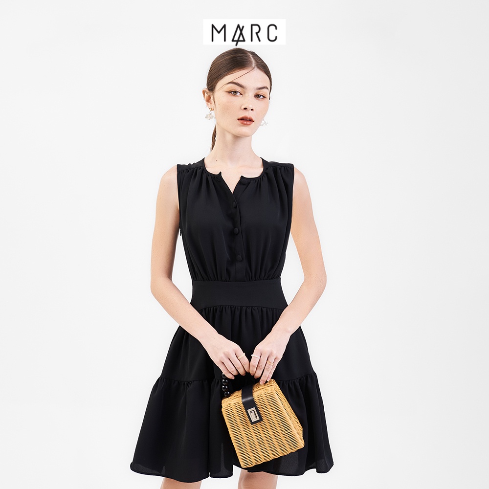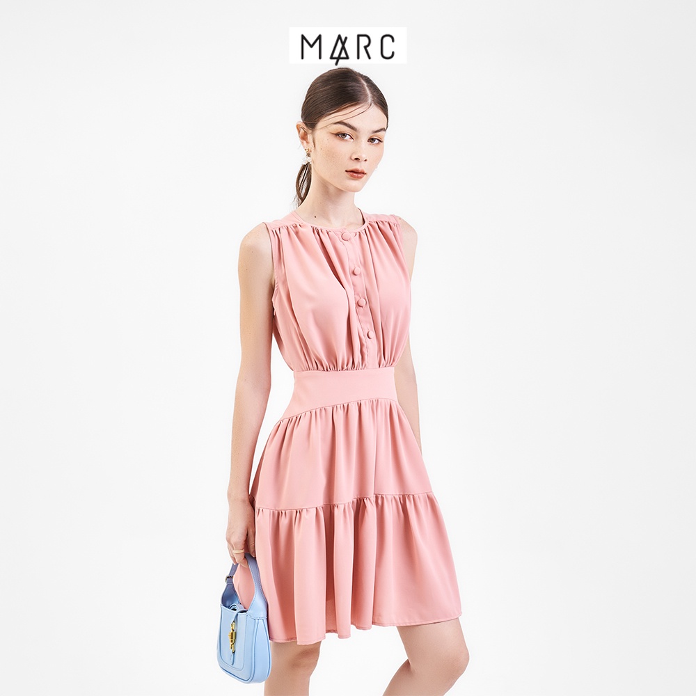 Đầm nữ MARC FASHION cổ tròn sát nách đính nút 2 tầng CBVH0699