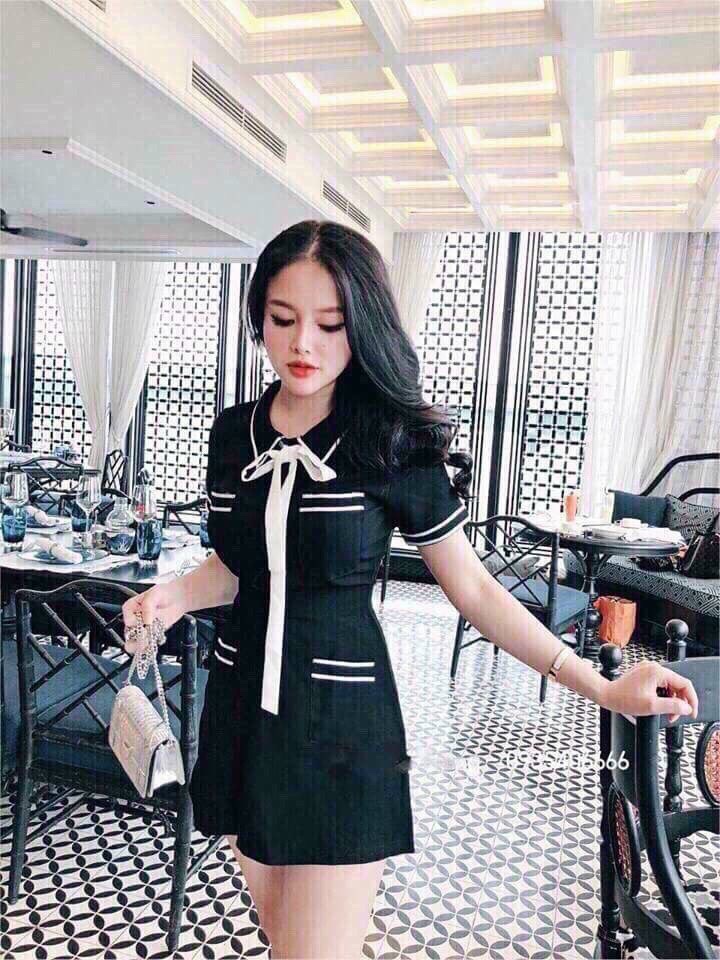 Thiết kế Đầm nữ túi viền thắt nơ thời trang cao cấp phong cách đường may tỉ mỉ.