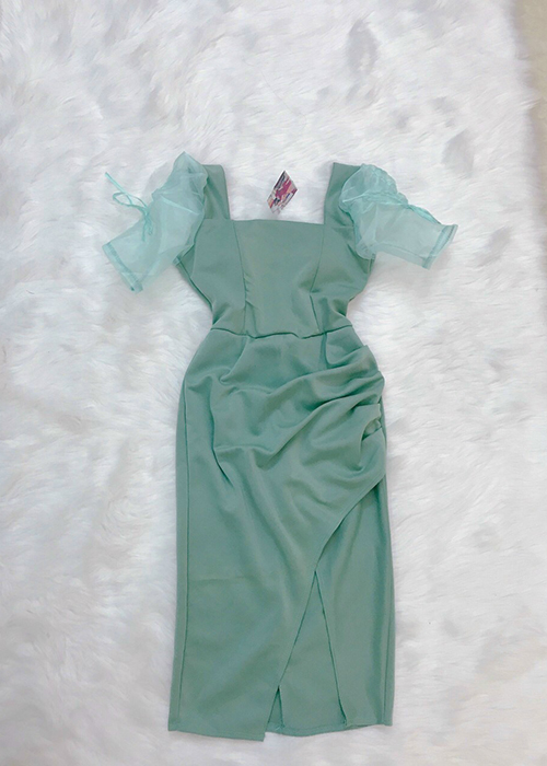 Kiểu Dáng: Thiết Kế Cổ Vuông, Tay Lưới Ngắn Thắt Nơ Duyên Dáng, Dây Kéo Sau Lưng, Kèm Cúp Ngực, Form Dáng Ôm Body, Xếp Ly Tà Xéo, Xẻ Tà Nữ Tính, Phù Hợp Dạo Phố, Hẹn Hò, Dự Tiệc,