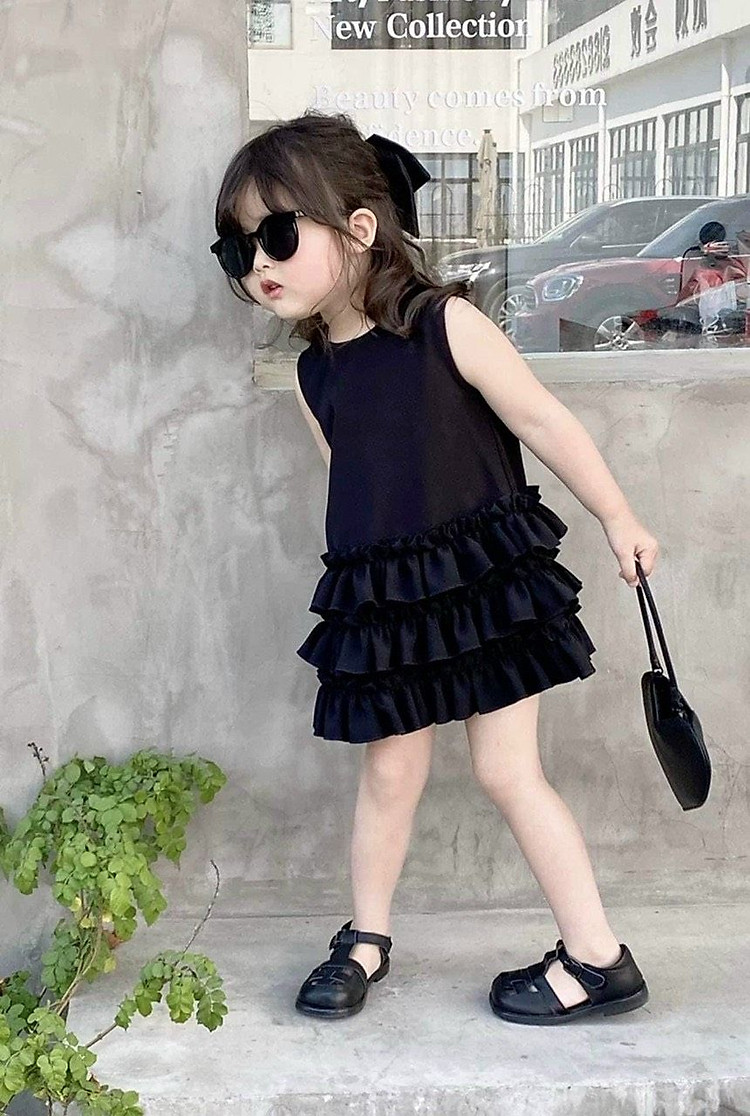 VÁY BÉ GÁI ĐEN PHỐI CHÂN BÈO Siêu xinh