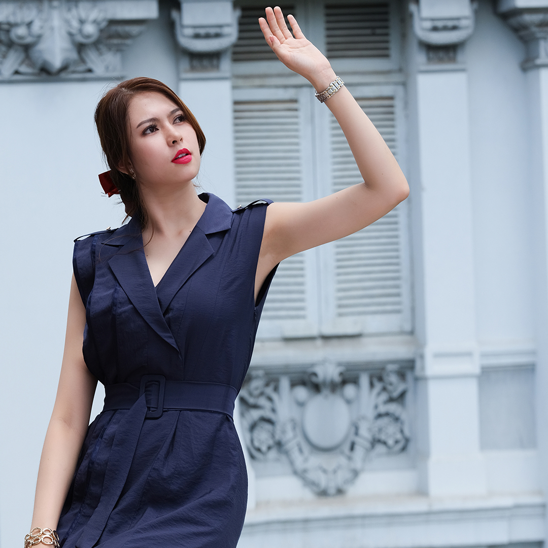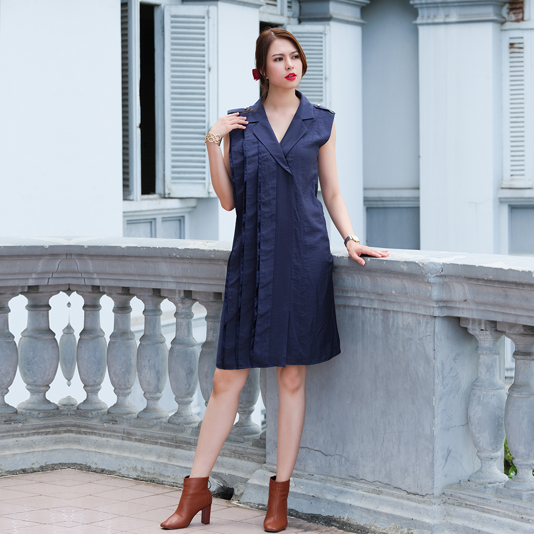 Sắc màu Xanh Navy kinh điển được Hity khéo léo chọn và phối giữa hai nền vải lụa poly và satin tạo nên một chiếc đầm suông thanh lịch cho những ai yêu thích nét tinh tế và sang trọng của các thiết kế thời trang.