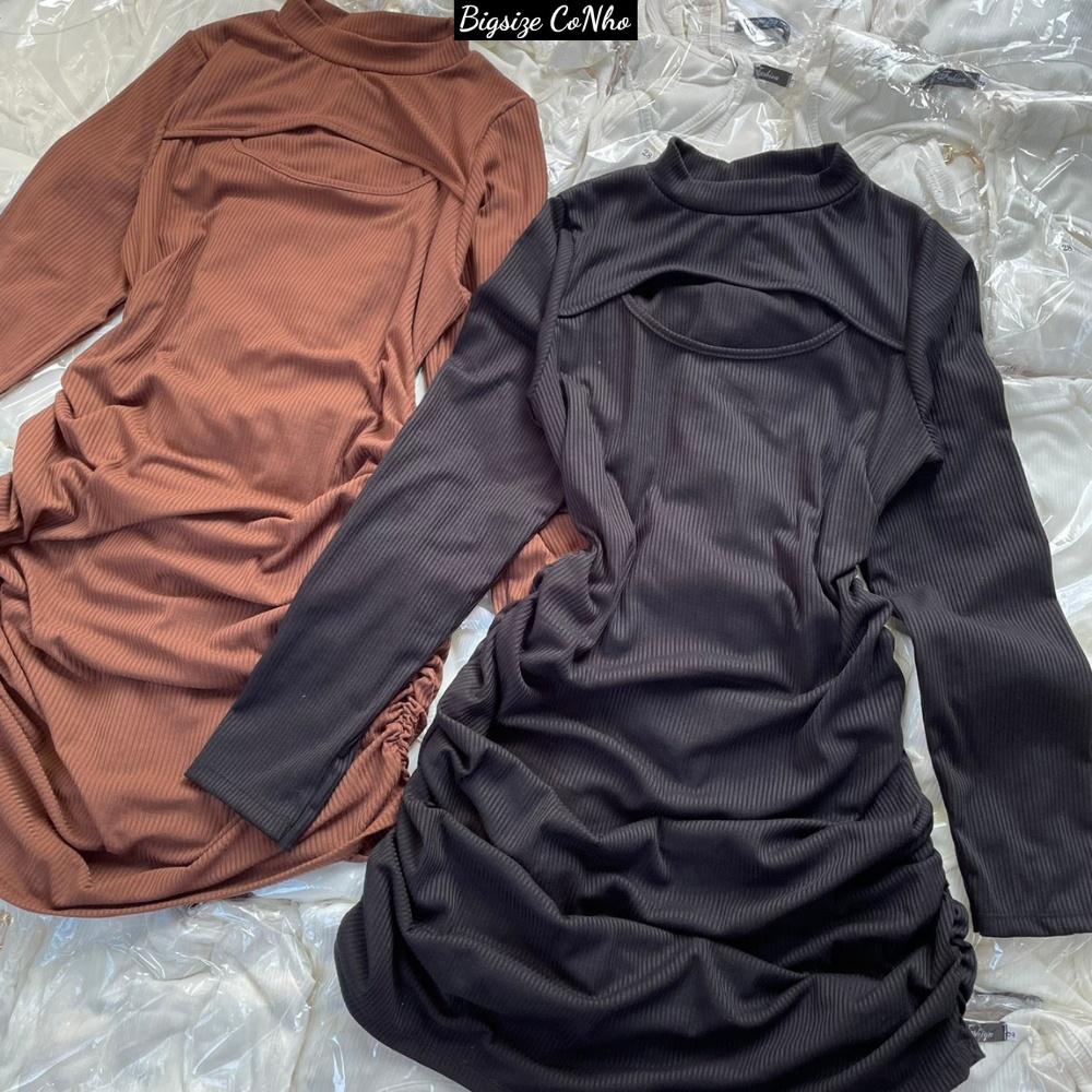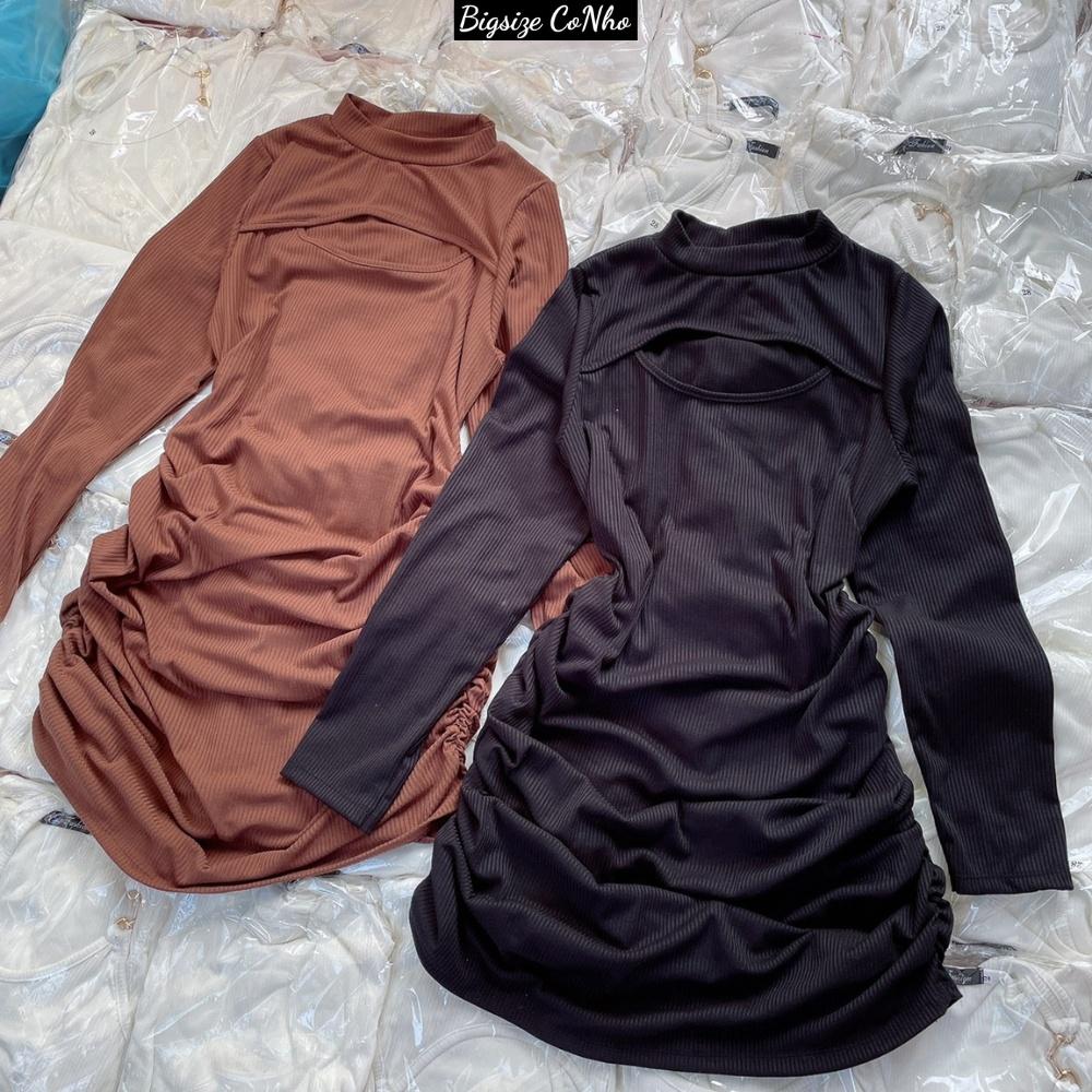 Đầm bigsize xẻ ngực nữ dáng dài ôm body nhún eo hai bên chất gân tăm co giãn, Váy bigsize nữ 60-95kg G71