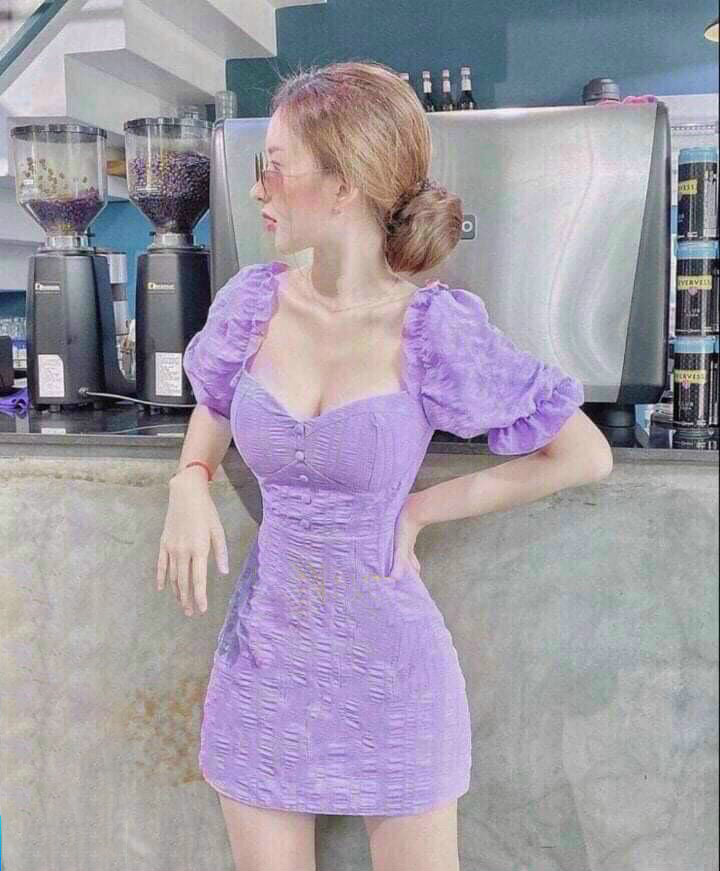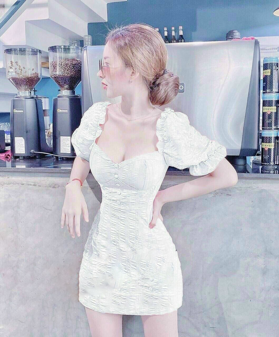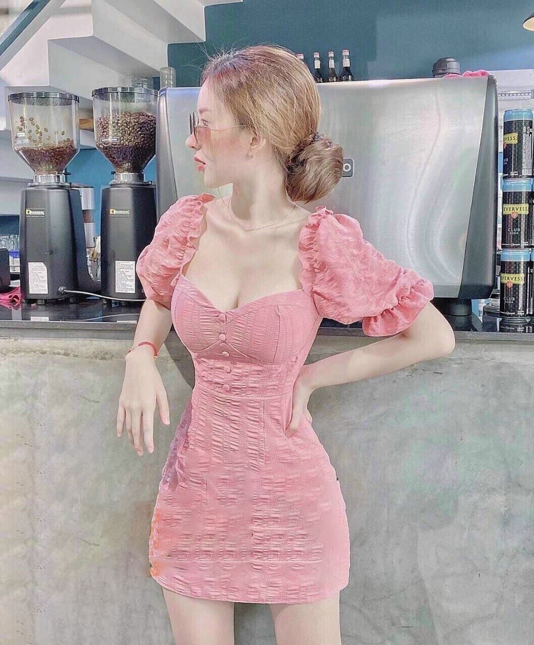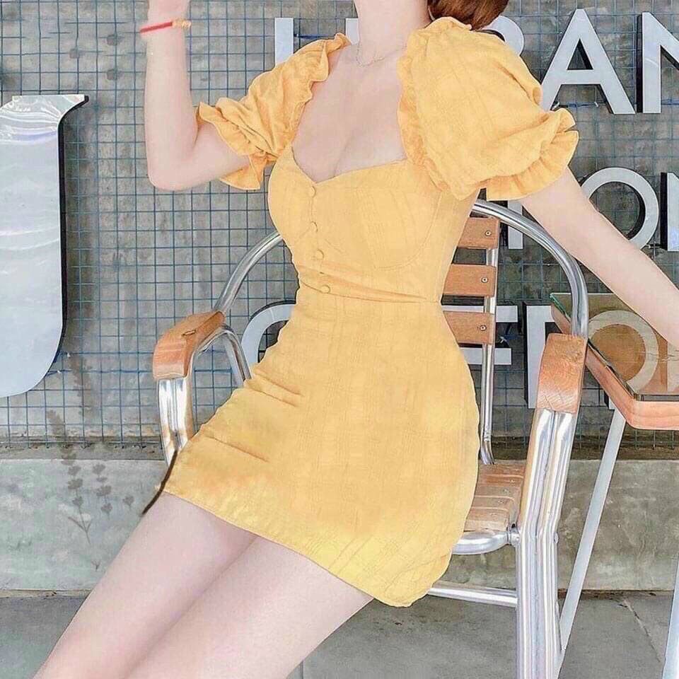 Thiết kế Đầm tay phồng đính nút cao cấp phong cách đường may tỉ mỉ.