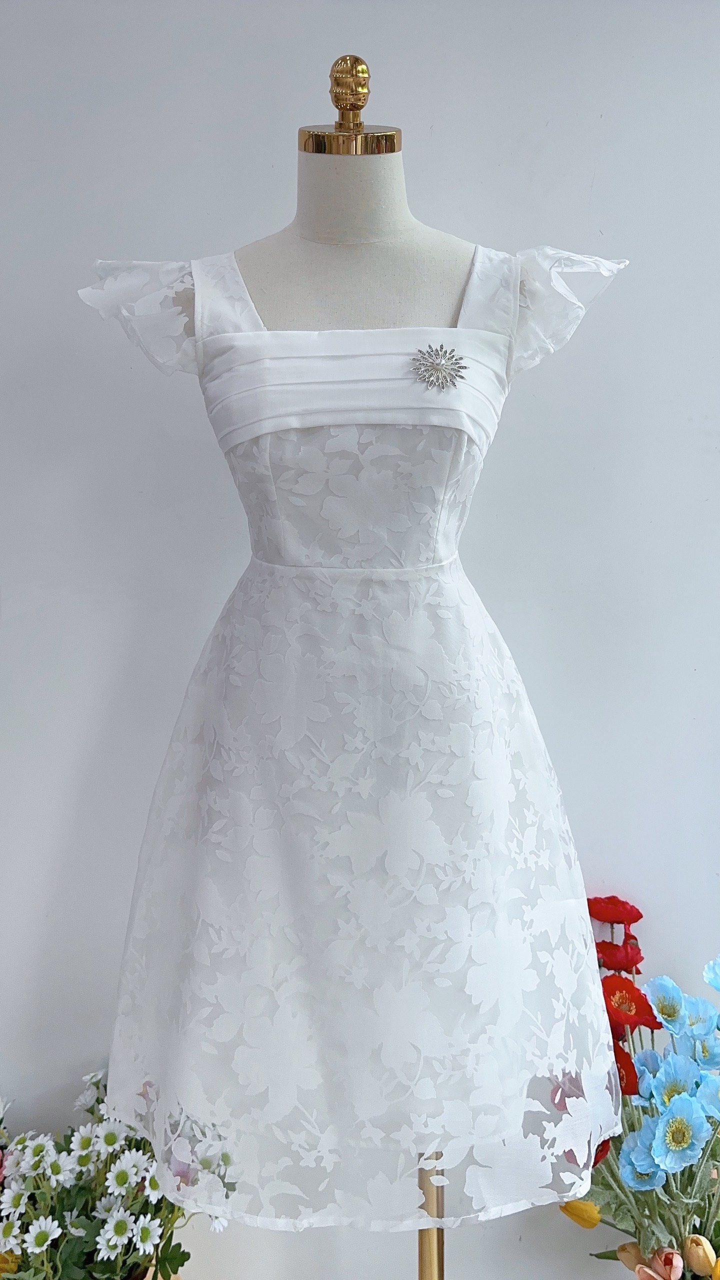 - Màu sắc: Váy thiết kế MAY V342 có màu Trắng nữ tính, sang trọng, thanh lịch và dễ mặc, làm sáng và nâng tông da người mặc từ 1 – 2 tông.