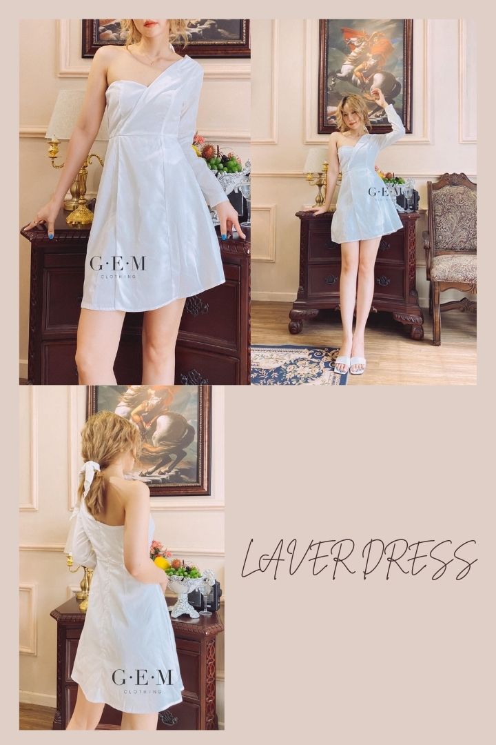 Đầm trắng xéo vai Laver Dress