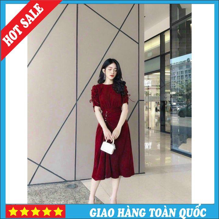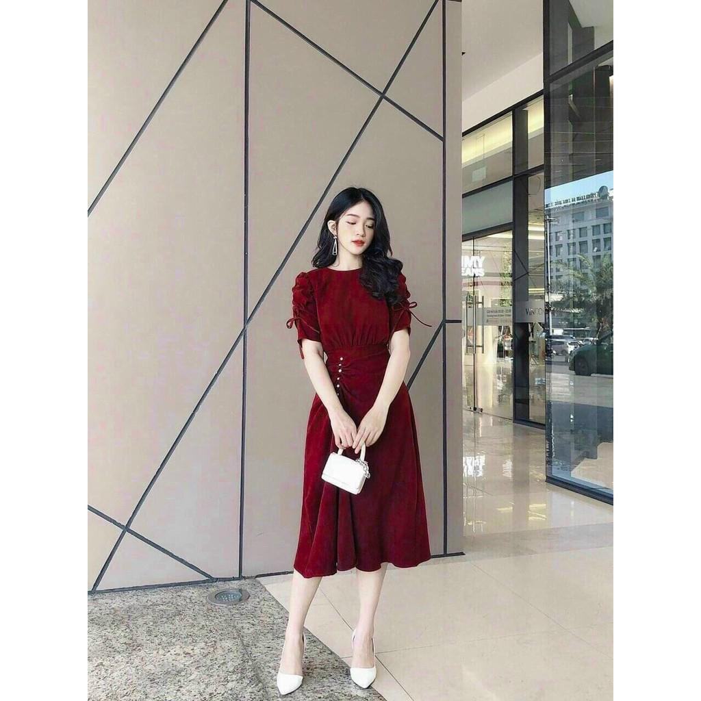 Đầm váy nữ đỏ đi chơi đi tiệc du lịch sang chảnh tay rút nhún eo MTB hàng đẹp cao cấp