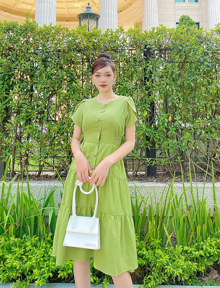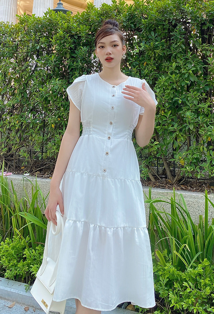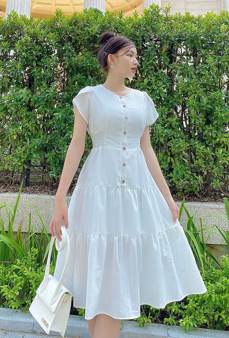 Đầm xòe 3 tầng phối nút duyên dáng D060 - Lady Fashion