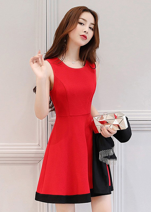 Kiểu Dáng: Thiết Kế Cổ Tròn Duyên Dáng, Không Tay Đáng Yêu, Form Dáng Xòe, Kế Hợp Lai Đầm Phối Màu Nổi Bật, Trẻ Trung