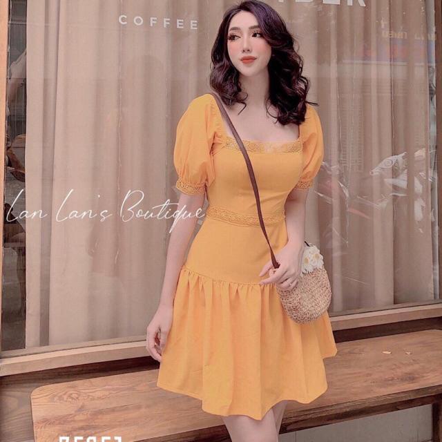 Đầm Xoè công chúa lệch vai kết cánh hoa nổi và CƯỜM SANG TRỌNG SIÊU XINH