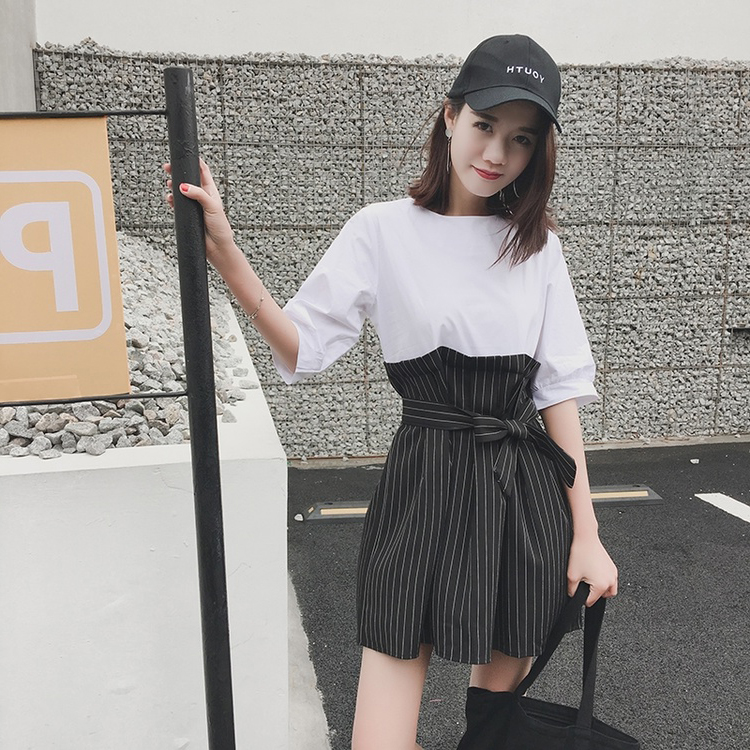 Tên sản phẩm: Đầm xoè thắt nơ sọc đen phối trắng sang chảnh thời trang RD029