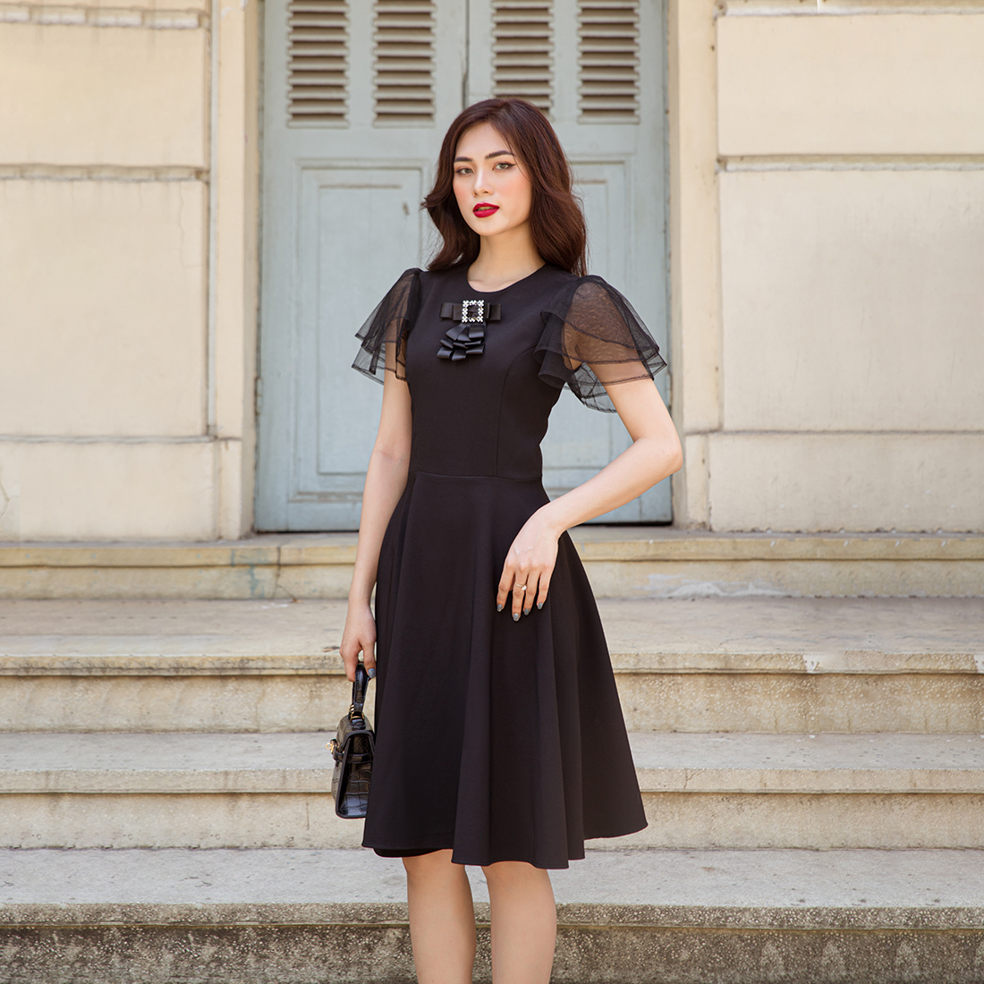 -Kiểu dáng : Đầm dáng xòe, tay ngắn.
