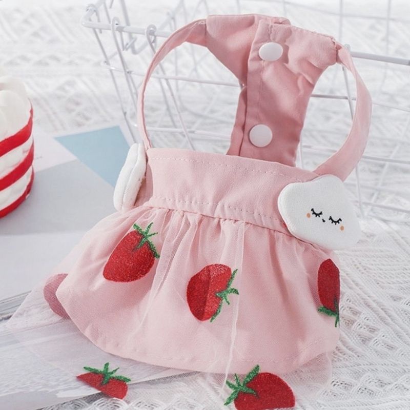 Đầm Xòe Trái Dâu Siêu Xinh Dùng Cho Thỏ - Chó - Mèo - Sóc
