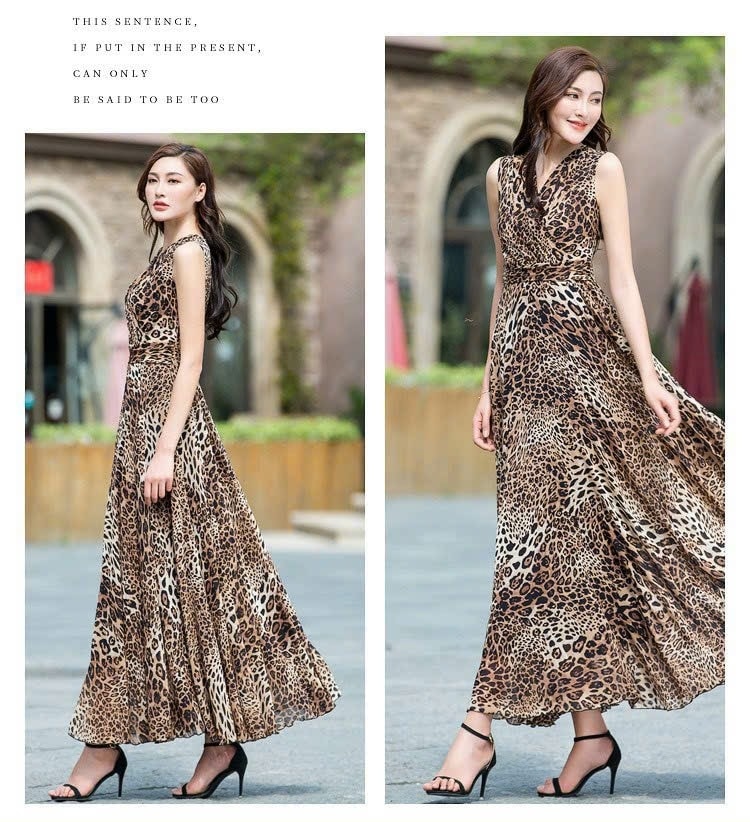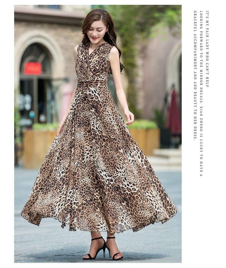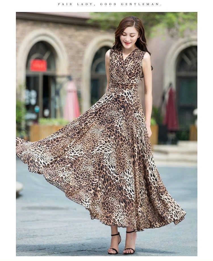 ĐẦM XÒE VOAN LỤA HỌA TIẾT BEO CỔ ĐẮP CHÉO