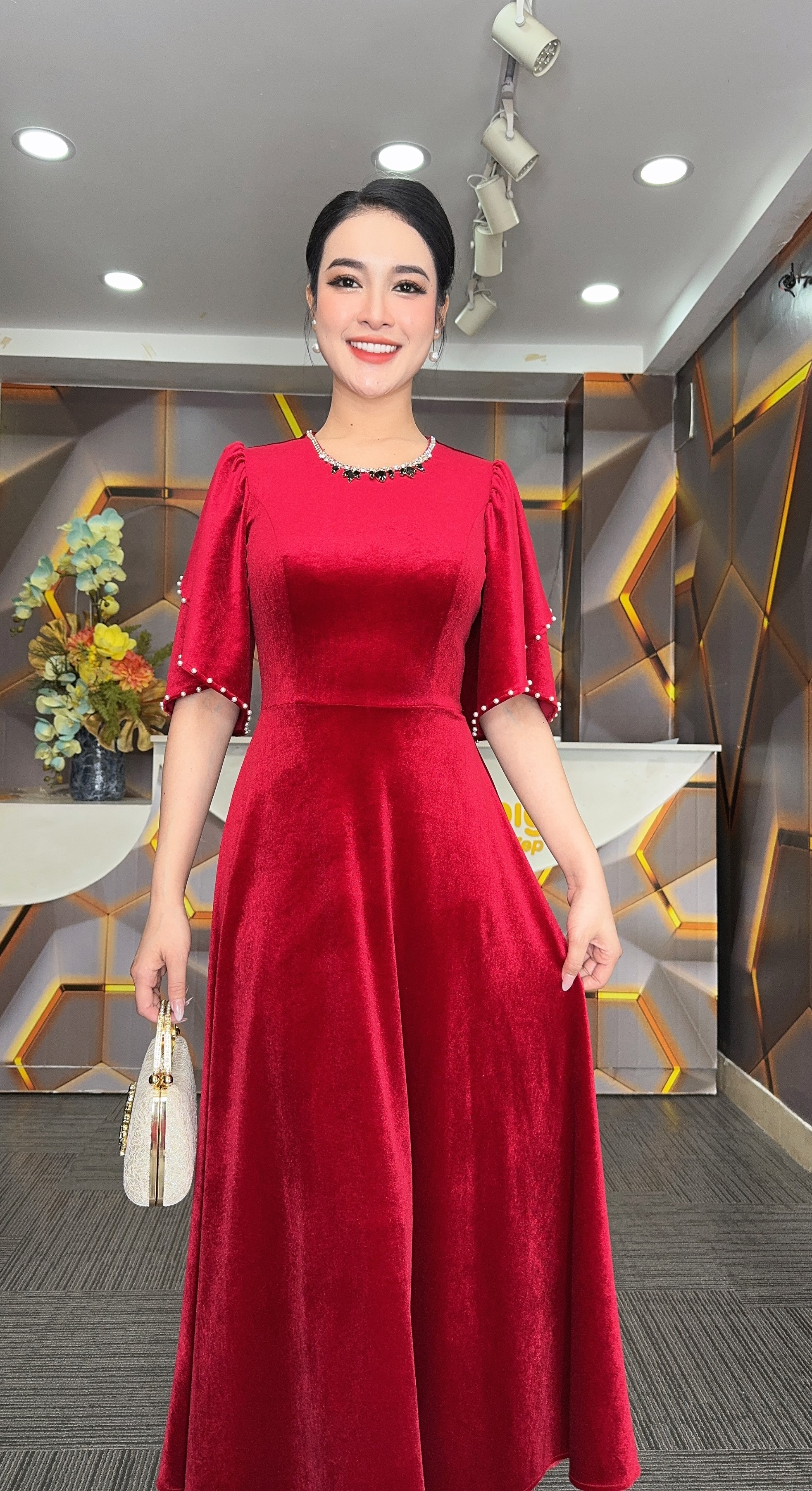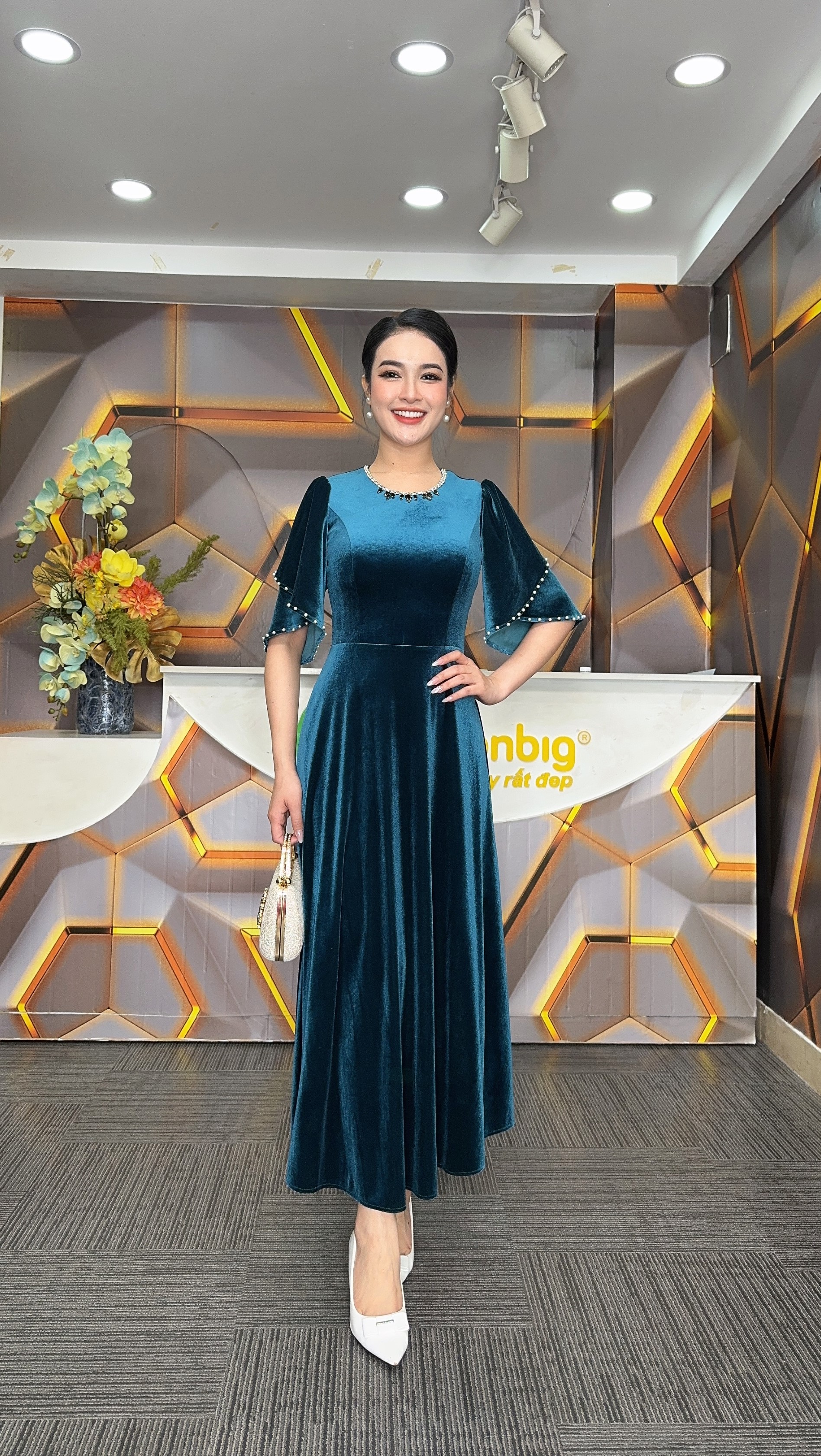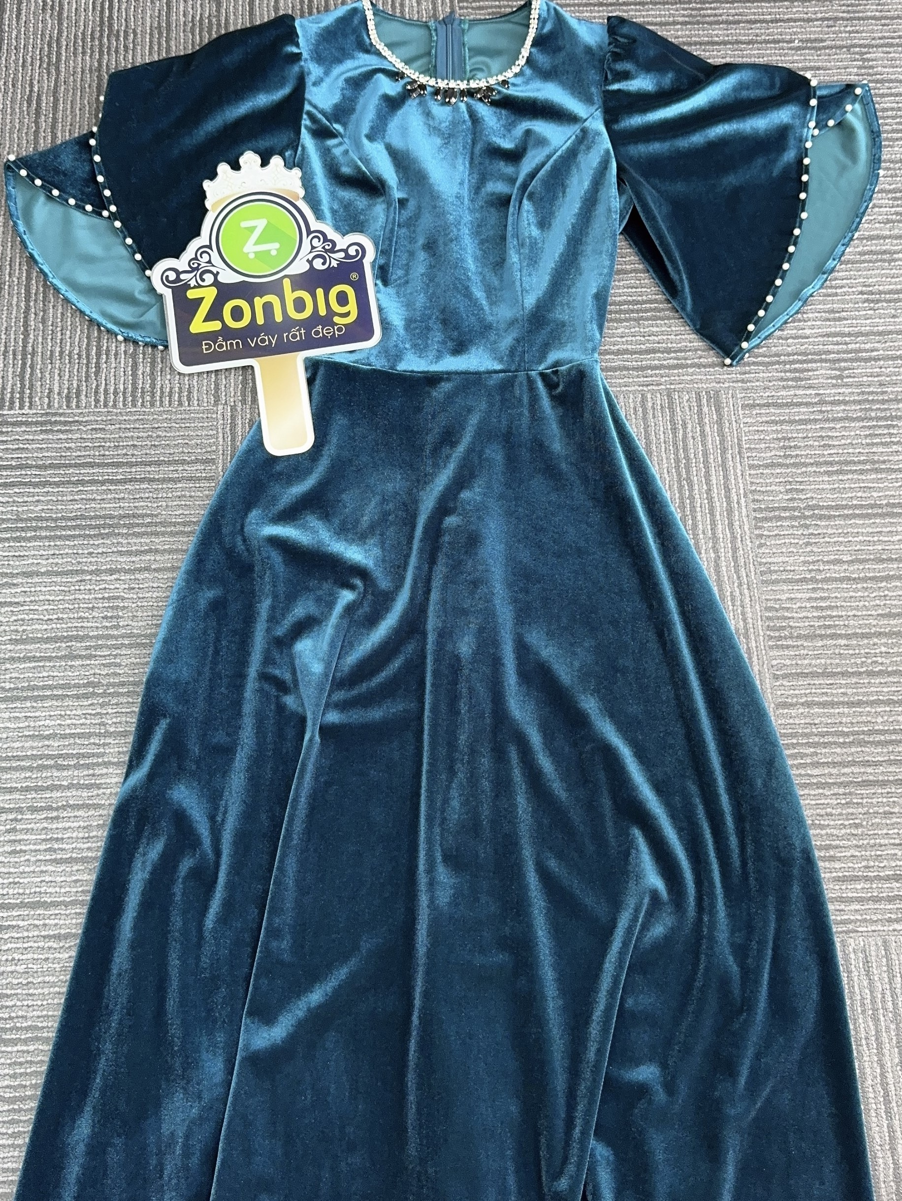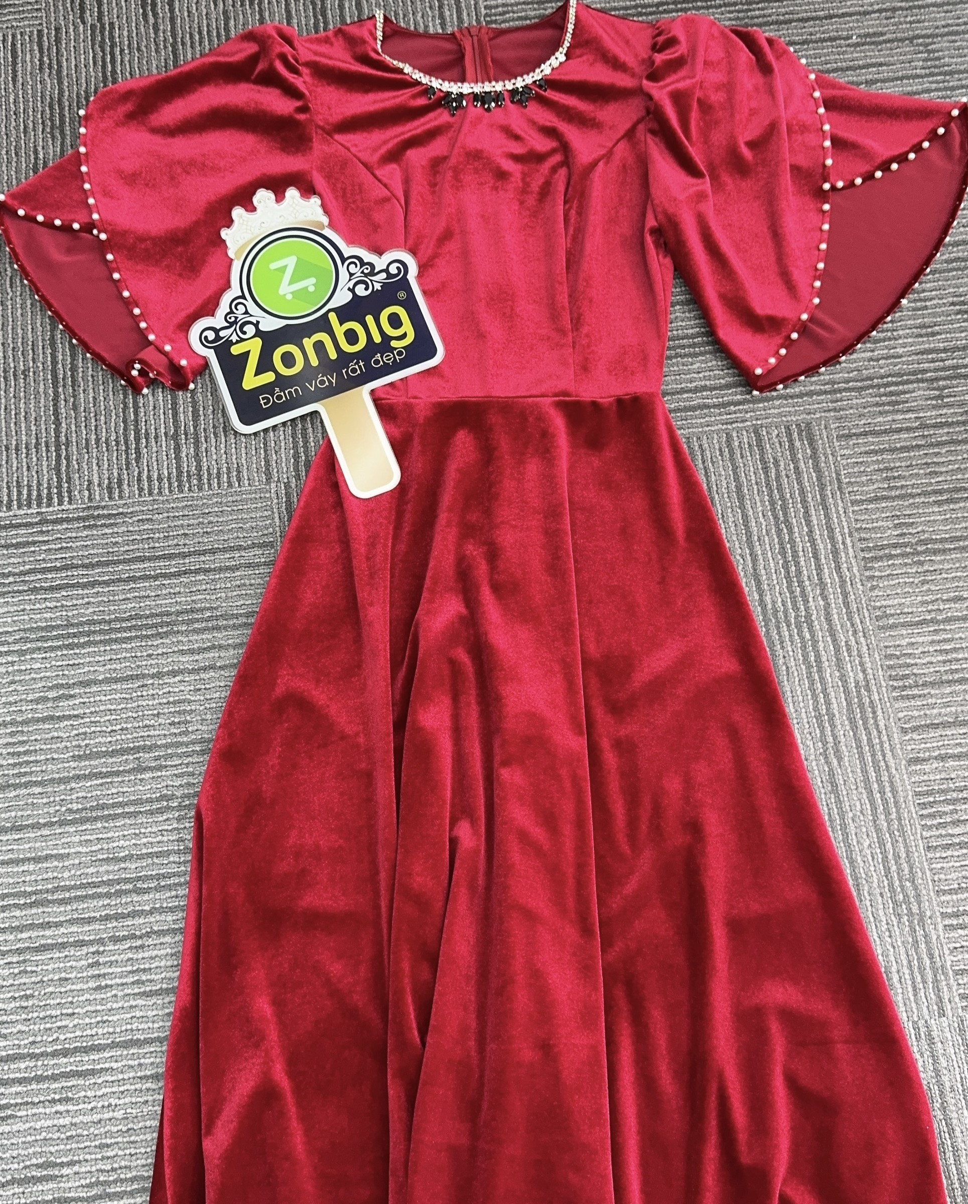 Chất liệu: thun phủ nhung co giãn nhiều, nền vải sang mướt mịn nhẹ phối dây đá cổ+ đính hạt ngọc vòng tay