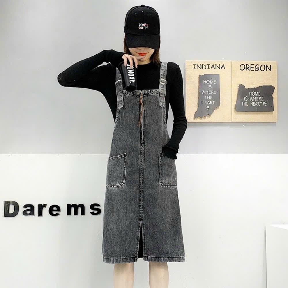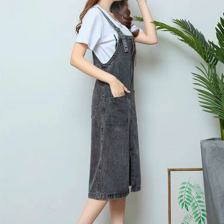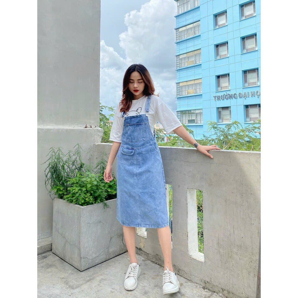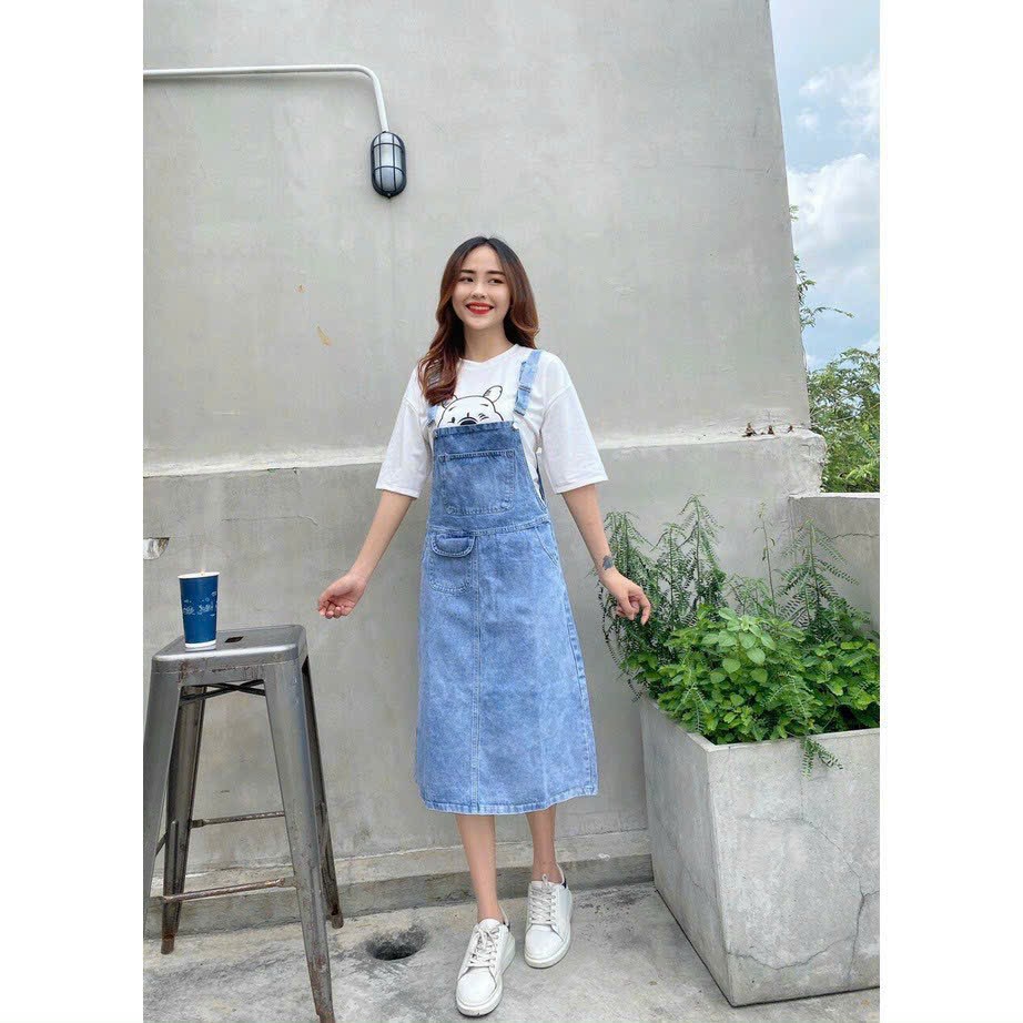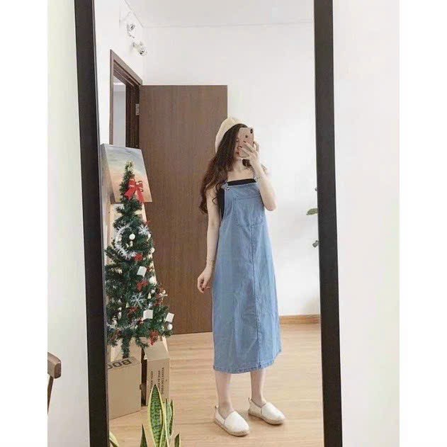 - Váy yếm dài rất phù hợp làm set đồ mặc đi làm đi chơi và đi học.