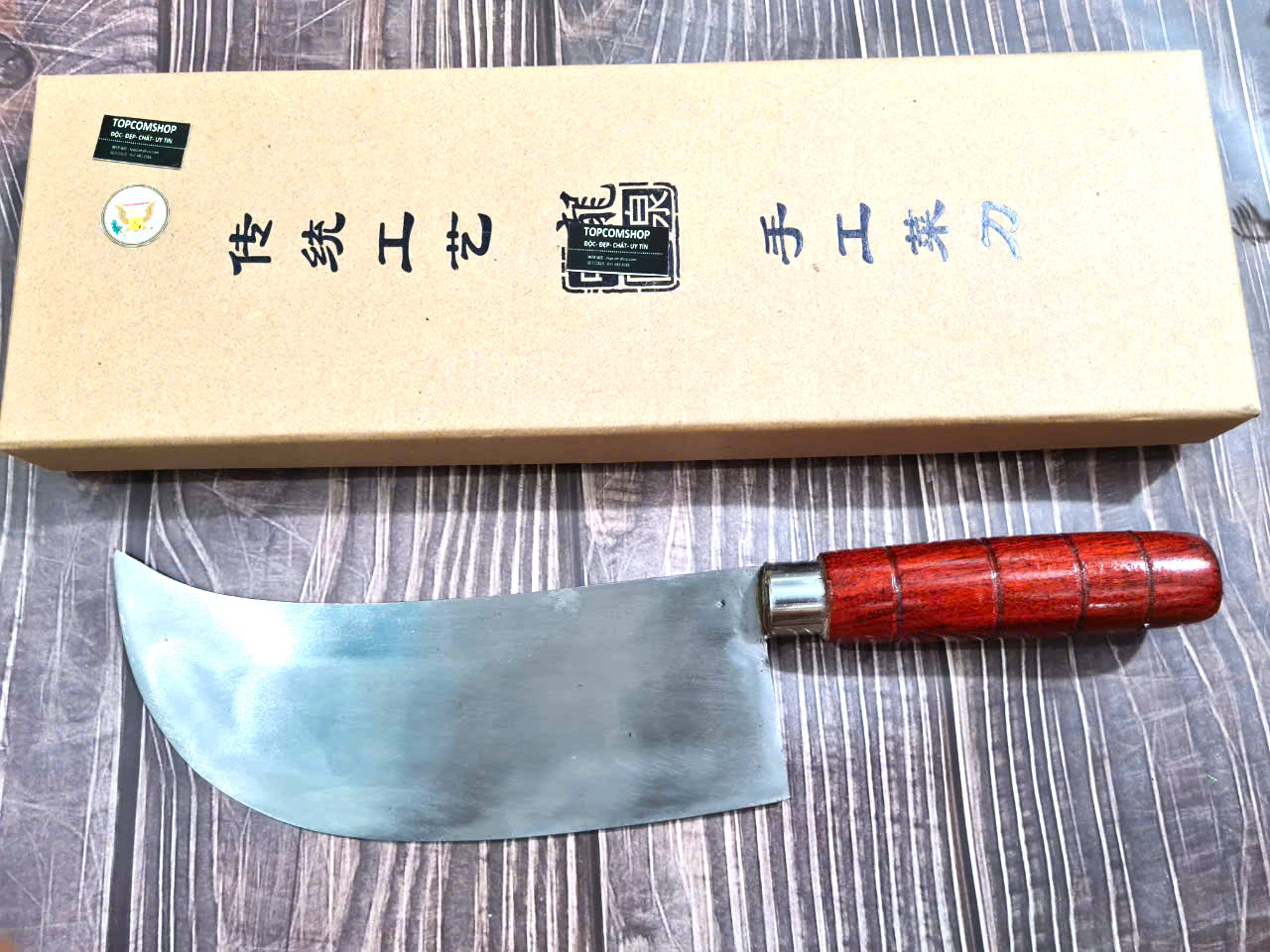 - Cán dao làm từ gỗ lim sang trọng, tay cầm hơi phình ở giữa giúp cầm nắm chắc chắn hơn.