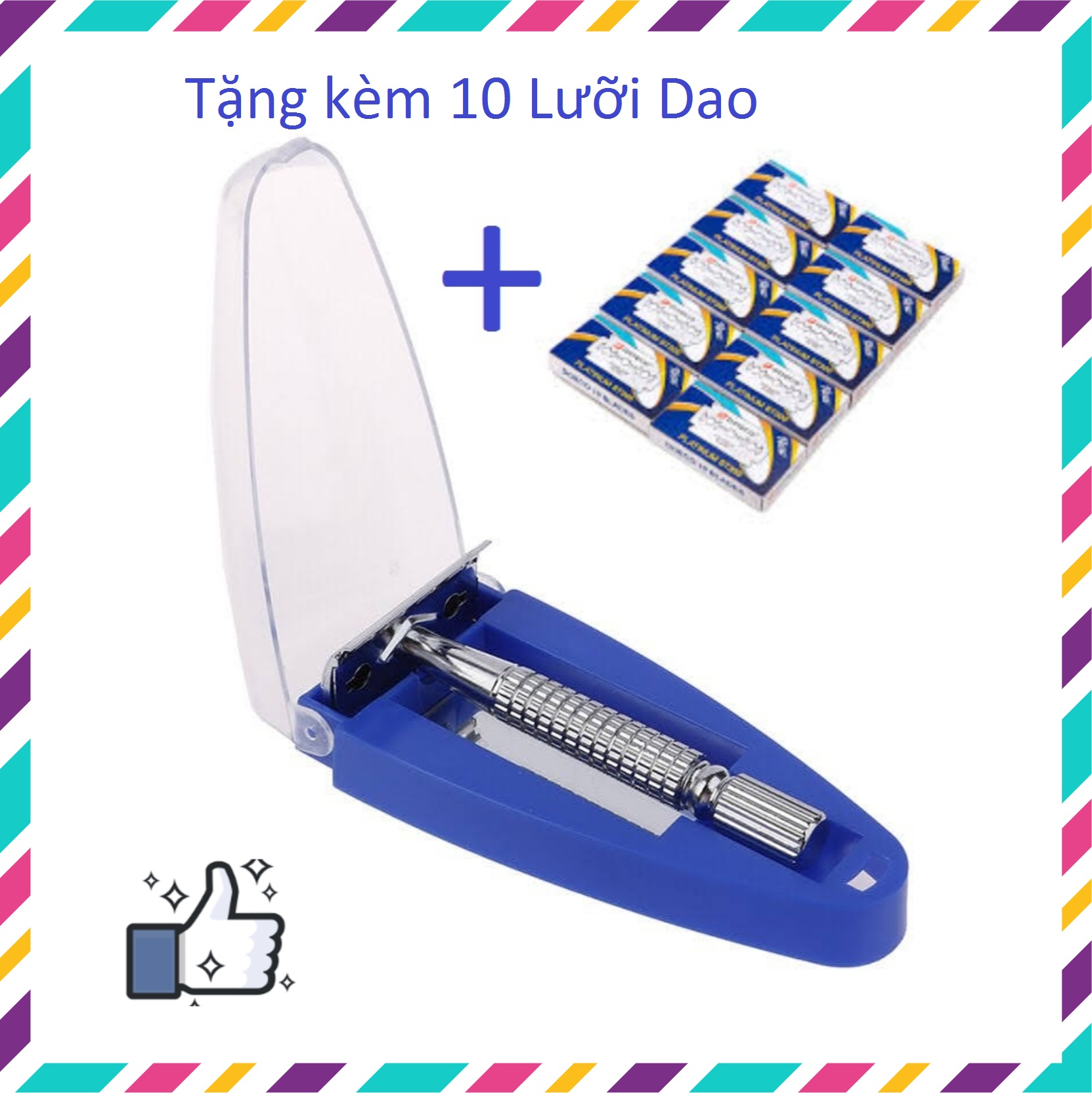 - Bộ sản phẩm bao gồm: 01 dao cạo râu + 01 lưỡi dao lam + 01 hộp đựng có gương.Tặng kèm 10 Lưỡi Dao Cạo