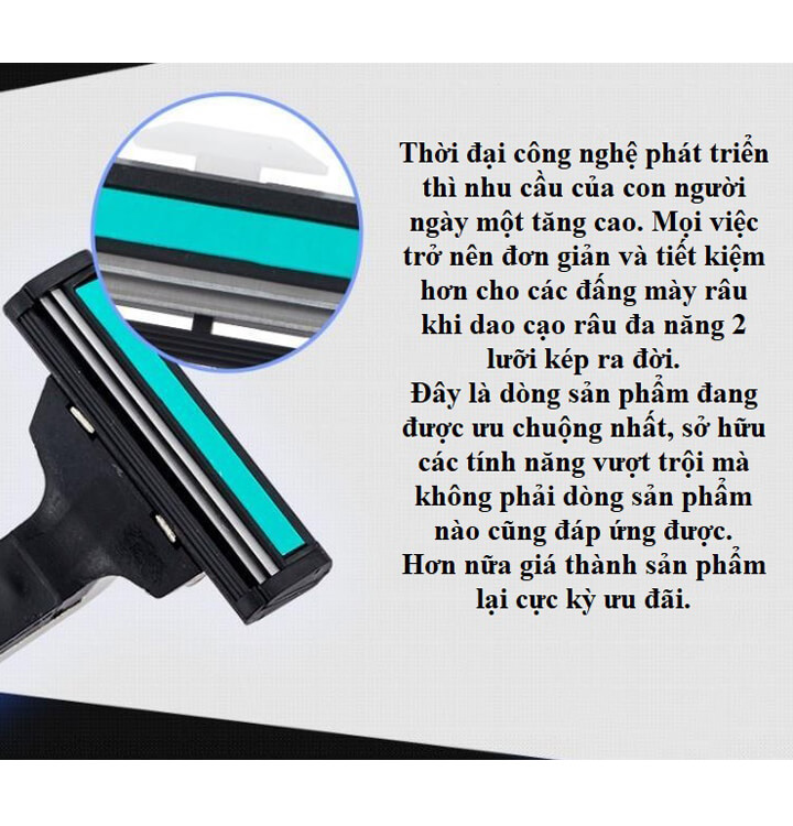 Ngày nay Việc cạo râu là một công việc đơn giản đối với phái mạnh song để lựa chọn một thiết bị phù hợp với làn da, sở thích của mình, chắc hẳn các đấng mày râu chắc hẳn gặp không ít khó khăn, nhất là đối với những người có làn da nhạy cảm. sản phẩm Dao cạo râu lưỡi kép-TVS-36 lưỡi dao kép thay thế với thiết kế lưỡi thông minh sẽ giúp cho bạn có thể vừa cạo sạch râu và lông ở bất kỳ vùng nào trên khuôn mạt, vừa có thể bảo đảm da mặt của bạn không bị tổn thương.