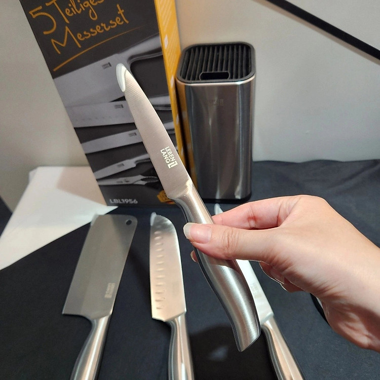 - Bộ dao 5 món Lebenlang chống gỉ sét, chống ăn mòn, không chứa thành phần độc hại và không tương tác hóa học với thực phẩm, đảm bảo an toàn cho sức khỏe.