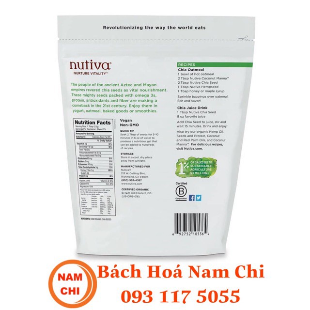 HSD: 04/2022 Quy cách: Gói 907g Xuất xứ: Mexico - Thương hiệu: Mỹ Hãng SX: Nutiva Hạt chia hay còn gọi là Salvia Hispaniola, loại hạt này đen hoặc màu. Hạt chia có hình dáng rất nhỏ khá giống hạt mè hoặc hạt é mà chúng ta vẫn thường thấy.