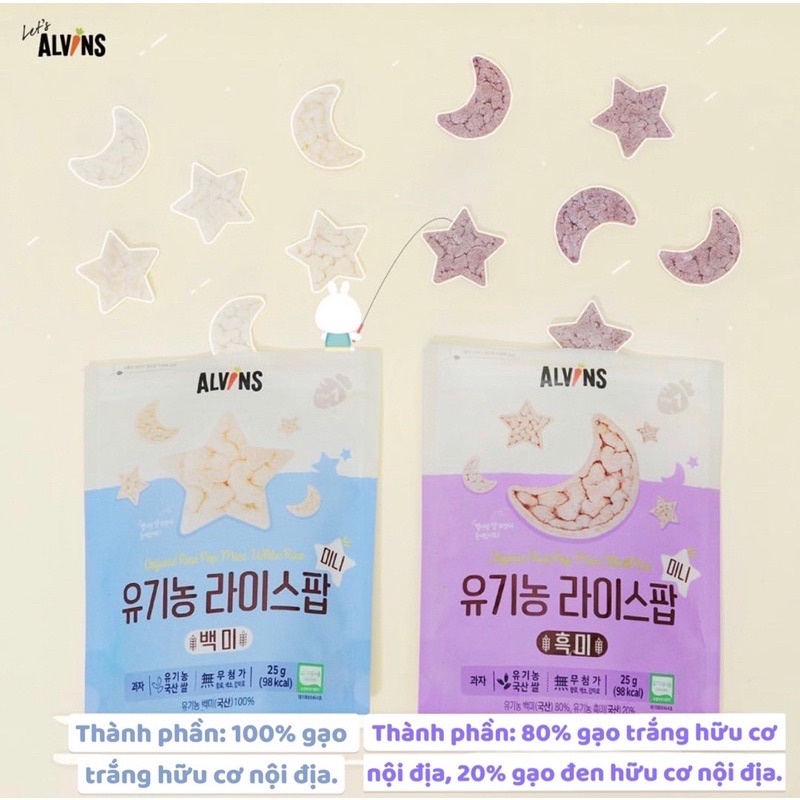 Mẹ & Bé > Đồ dùng ăn dặm cho bé > Đồ dùng cho bé > Đồ dùng ăn dặm || DATE 9/2022 Bánh gạo ăn dặm hữu cơ ALVINS Pop mini hình trăng sao cho bé 6m+ (không sữa)