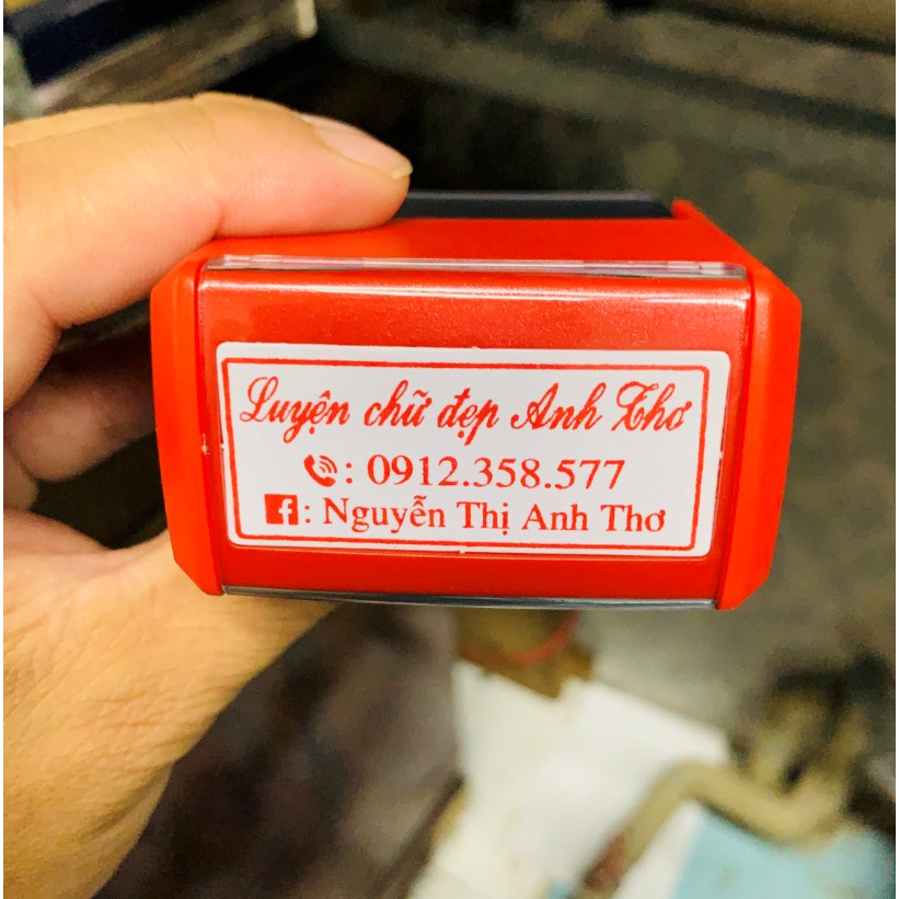 Hướng dẫn đặt hàng. Quý khách đăt hàng theo màu mực dấu tùy chọn Ví dụ mực đỏ - hoặc xanh dương - mực đen sau đó ghi chú nội dung cần làm cho shop - shop sẽ thiết kế mẫu cho quý khách duyệt trước khi gửi hàng. *1. MÔ TẢ SẢN PHẨM - Tên sản phẩm: Con Dấu "Tên, địa chỉ & SĐT" Khắc theo yêu cầu (Box) - Mã sản phẩm: Dstamp T314 - Thương hiệu: Chính hãng Dstamp - Mẫu mã: Mới 100%, Nguyên đai, Nguyên kiện - Loại mực: Dùng được cho các loại mực nước (Lưu ý: Chỉ dùng được cho 1 màu mực khi đã chọn) - Màu mực: Tùy chọn - Kích thước mặt dấu: R20mm x D47mm - Trọng lượng: 80g - Chất lượng: Con dấu được sản xuất trên công nghệ hiện đại của nhật và thương hiệu uy tín “dstamp”, Mấu mã hiện đại, gọn đẹp, chữ đóng ra rõ ràng từng nét - Bảo hành: 12 tháng *2. CÔNG DỤNG CỦA SẢN PHẨM - Dấu thường dùng đển làm dấu shop, cửa hàng, dấu cty dòng tối đa 03-04 dòng - Không đóng trên bề mặt chất liệu Nilon, Sắt, Thép, Decal nhựa - Khi hết mực tái sử dụng bằng cách: Nhỏ mực vào khay chứa mực và bắt đầu sử dụng, Quý khách lưu ý việc lựa chọn mực dấu phải phù hợp với mục đích sử dụng (Mực thường: Đóng trên giấy - Mực đặc biệt: Dùng để đóng trên mọi chất liệu như nilon, sắt, bao bì, vải, giấy....) *3. LIÊN HỆ ĐẶT HÀNG TRÊN SHOPEE Đặt hàng bằng cách: Bước 1: Inbox với Shop và Cho thông tin nội dung cần đặt + Màu mực cho dấu + Số điện thoại Liên Hệ để shop tiện tư vấn. Bước 2: Đợi Shop Thiết kế và gửi hình ảnh cho xem trước Bước 3: Khách đồng ý và bắt đầu tiến hành đặt hàng trên Shopee (Chú ý khi đặt chọn màu mực) Bước 4: Shop cho sản xuất và gửi cho đơn vị vận chuyển để giao tận tay cho Khách Hàng - Lúc đó mới thu tiền. Bước 5: Nếu còn chưa rõ - Cần biết thêm chi tiết xin Quý khách Liên Hệ: ->> Hotline 0903372096 zalo, fb ->> Chúng tôi sẽ tư vấn Hoàn toàn Miễn Phí (CHÚNG TÔI CAM KẾT HOÀN TOÀN LÀ HÀNG CHÍNH HÃNG - KHÔNG BÁN HÀNG NGOÀI) #lamcondau #khacondau #dấu_3_dòng #dấu_trường_học #dấu_mầm_non #khắc_dấu #con_dấu