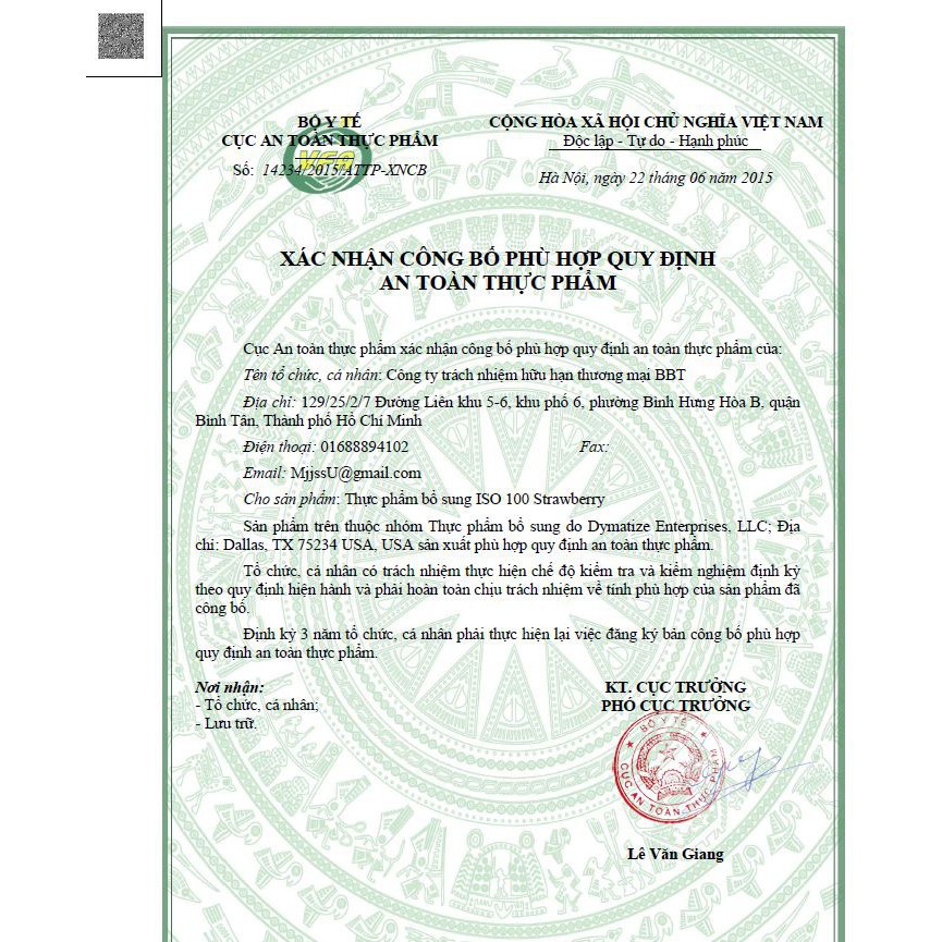 Chú Ý: Sản phẩm không phải là thuốc và không có tác dụng thay thế thuốc chữa bệnh