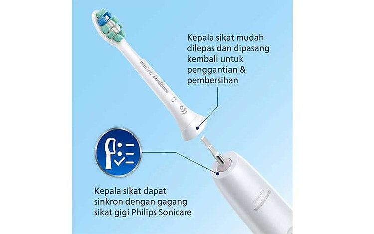 Đầu bàn chải điện này kết hợp với công nghệ điện sóng âm (sonic) của bàn chải điện Philips giúp tạo ra dòng nước giữa các kẽ răng và các động tác chải của bàn chải sẽ phá vỡ mảng bám và cuốn mảng bám đi để chăm sóc răng miệng hàng ngày. Sản phẩm kết sử dụng kết hợp với công nghệ BrushSync của Philips giúp chọn chế độ đánh răng tối ưu và mức cường độ để làm sạch răng miệng vượt trội, mà đảm bảo an toàn cho răng và nướu.